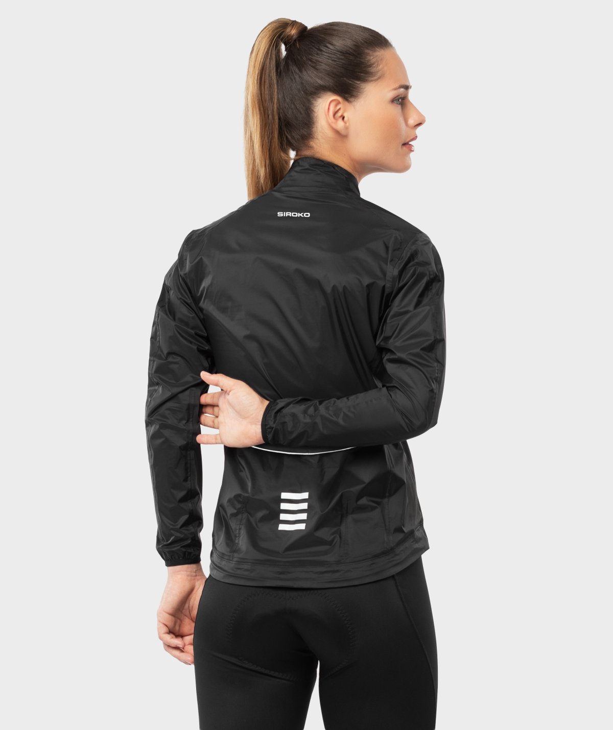 Přední část je o něco kratší, aby se látka zbytečně neshrnovala kvůli pozici jezdce na kole, zatímco ta zadní je naopak prodloužená, díky čemuž poskytuje pár centimetrů navíc, které vás ochrání před cákající vodou. Délka rukávů je speciálně navržena tak, aby vám dokonale padly a poskytovaly výjimečné pohodlí během náročných jízd. Díky laserové perforaci v podpaží, která odvádí přebytečné teplo, je zajištěna dokonalá prodyšnost. Nastavitelná elastická šňůrka na spodním lemu umožňuje upevnit bundu tak, aby během jízdy držela na místě. Součástí bundy je také zatavený, pogumovaný zip s ochranou proti rozepínání vlivem vlhka a ochranným krytem, jakož i reflexní prvky, díky kterým budete lépe vidět ve špatných světelných podmínkách.