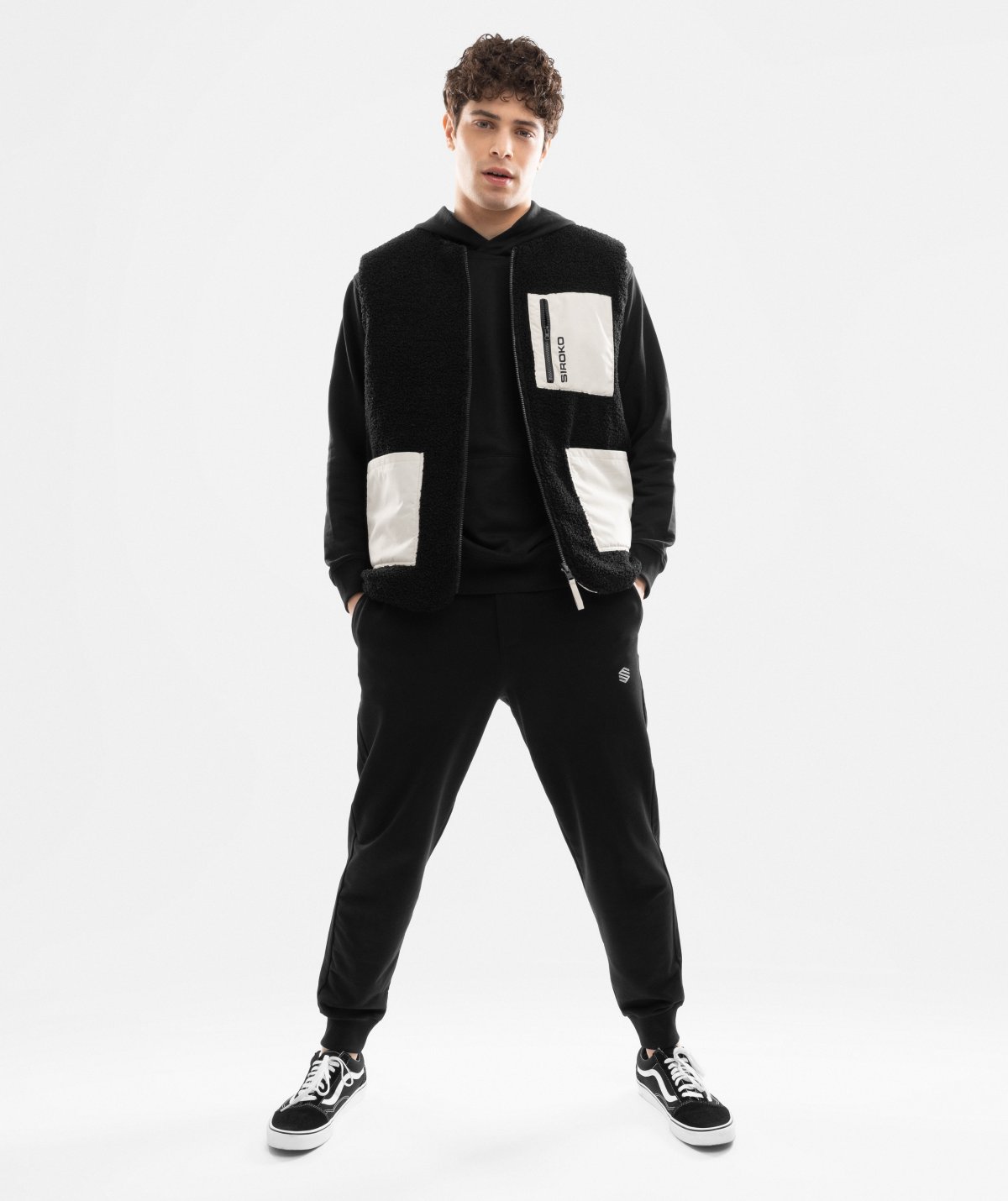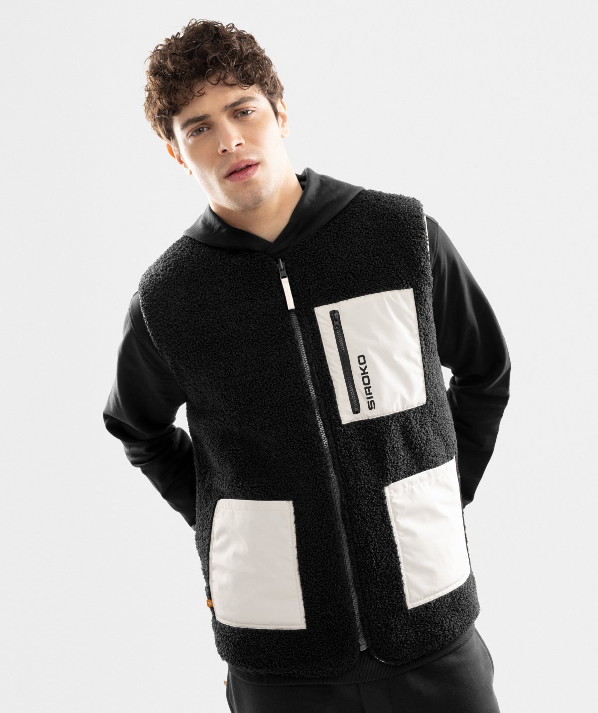 - Dvě přední kapsy a jedna hrudní kapsa na zip na straně B