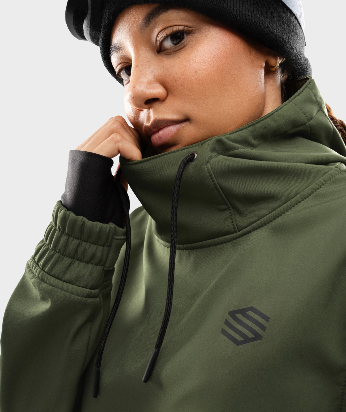 Softshellová tkanina se skládá ze tří vrstev různých materiálů, které zajišťují optimální výkon. Vnější vrstva z polyesteru a elastanu poskytuje ochranu před sněhem a deštěm (až do 10 000 mm vodního sloupce). Prostřední vrstva je vyrobena z TPU membrány, která chrání před větrem a odvádí vlhkost od těla. Vnitřní vrstva nabízí dokonalou tepelnou izolaci díky polyesterové mikrofleecové tkanině, která uchovává tělesné teplo.