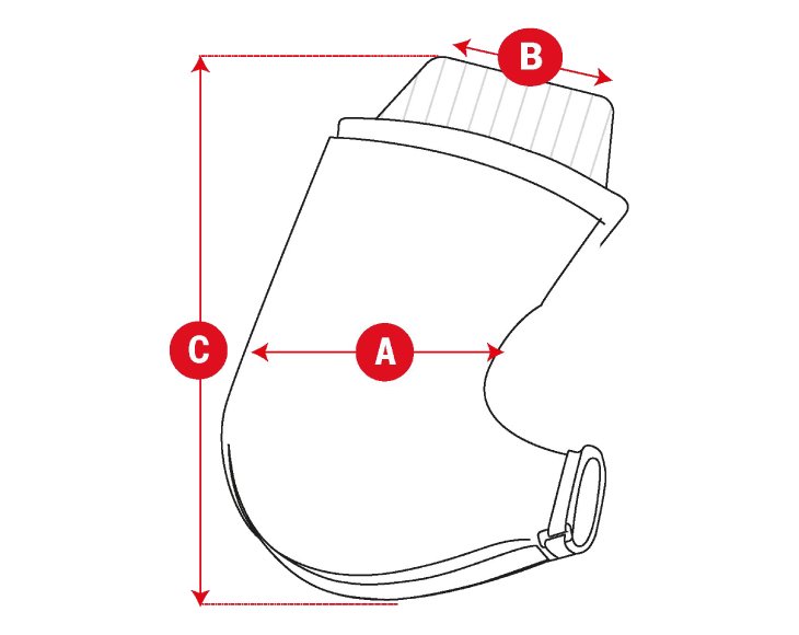 - Délka: 29,5 cm / Šířka: 24 cm / Manžeta: 11 cm / Otvor na řídítka: 5,2 cm
