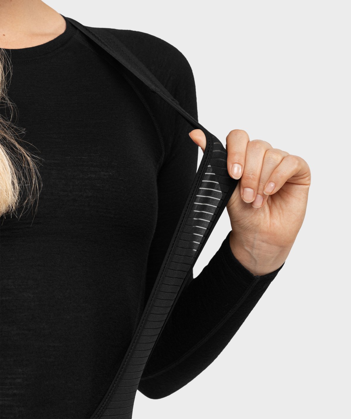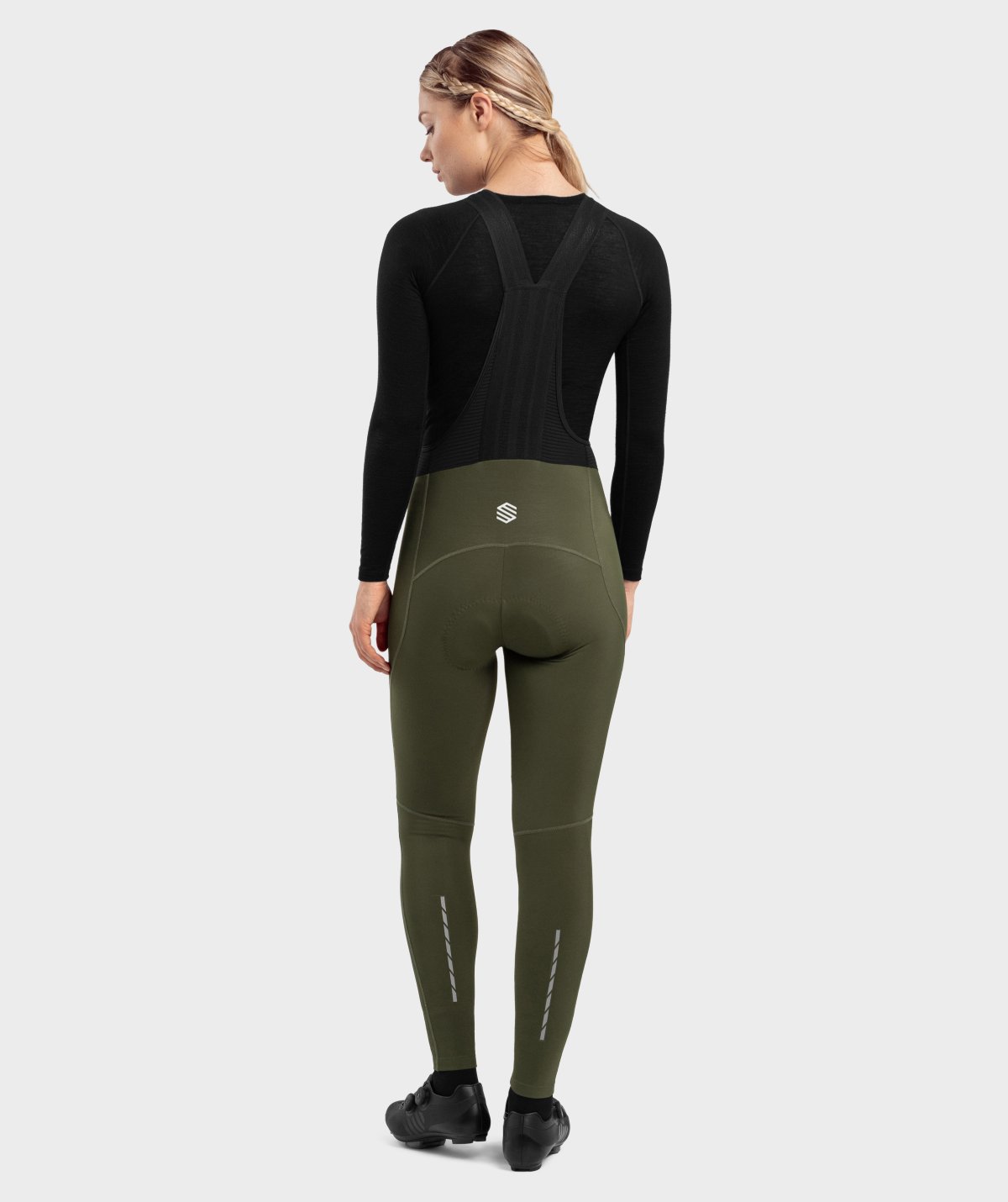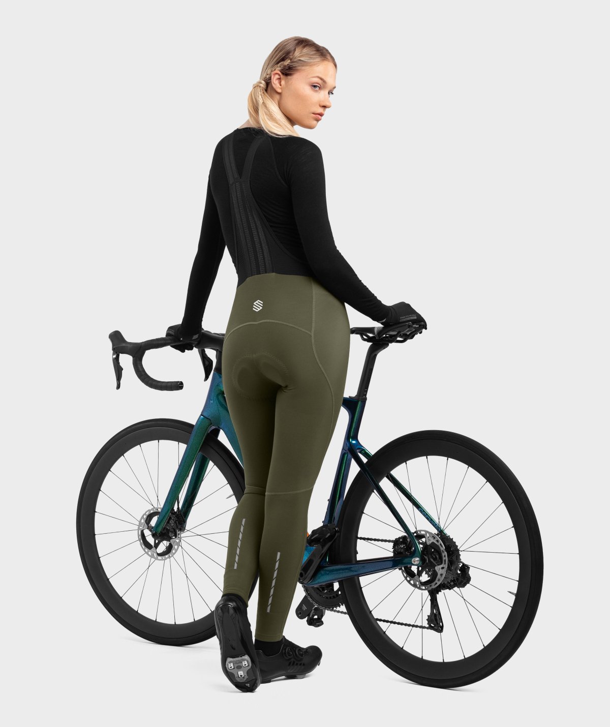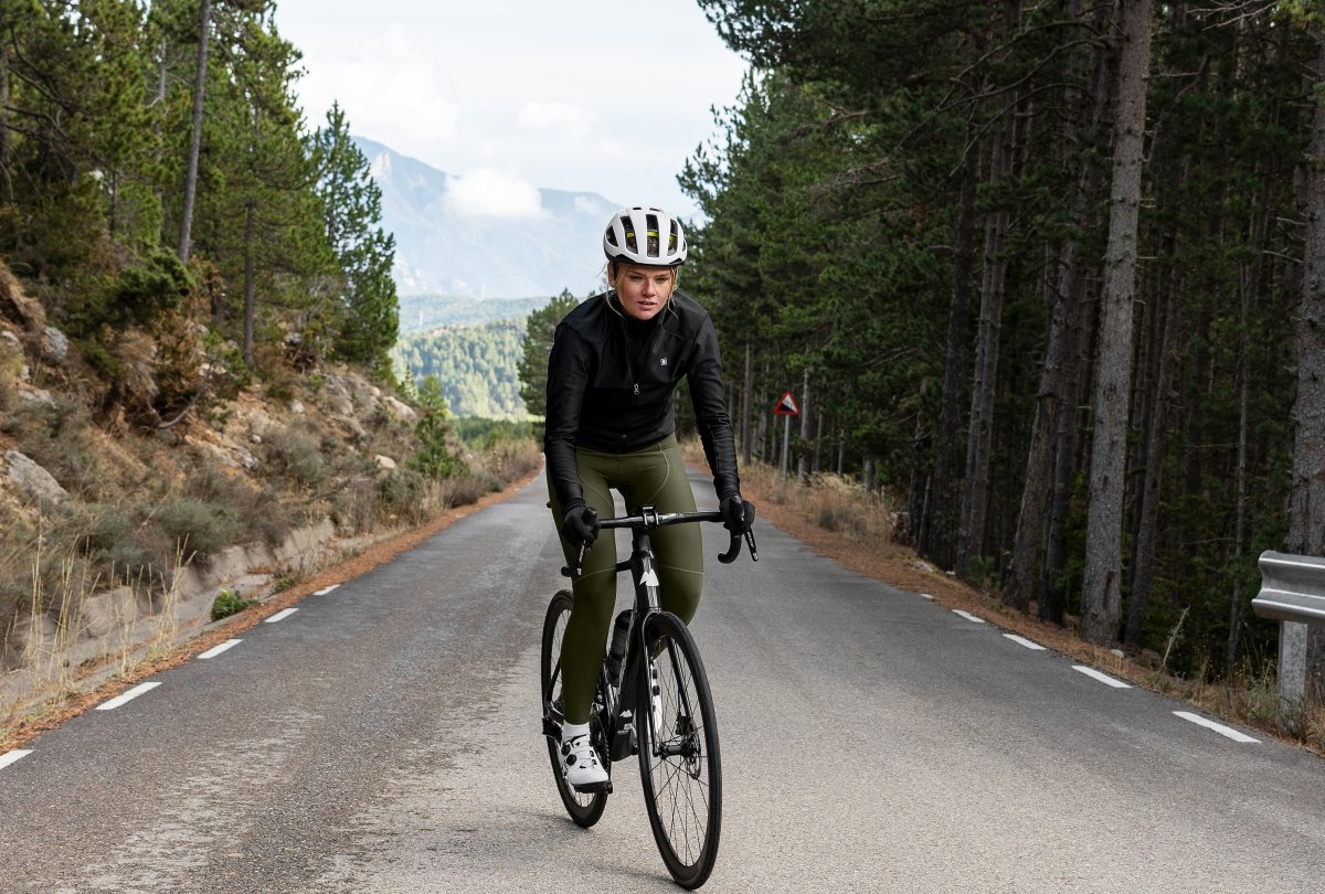 Finse cykelbukser giver ekstraordinær komfort takket være kombinationen af ultralette seler og Strato pad med høj densitet, ideel til op til tre timers udflugter og ruter. Deres højkomprimerende stof tilpasser sig perfekt til den kvindelige kropsform og sikrer en fremragende pasform, forhindrer gnidning og optimerer aerodynamik. Stoffet er fremstillet af polyester, nylon og elastan og har en børstet hudside for en enestående følelse af blødhed og komfort samt ekstraordinær varmeisolering. Den tætte elastiske ankelmanchet hjælper med at opretholde en perfekt pasform selv under ekstreme forhold.
