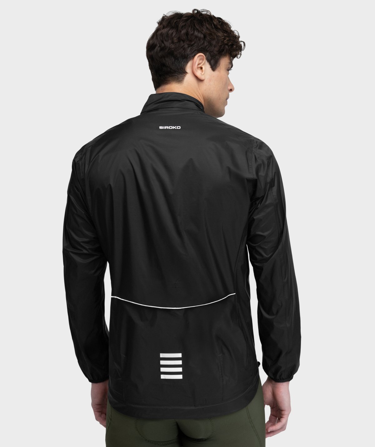 Den forreste del er lidt kortere for at undgå, at overflødigt stof samler sig på grund af cyklens position, mens ryggen har en faldhale, der giver et par ekstra centimeter for at beskytte dig mod vandstænk. Ærmelængden er specielt designet til at sikre en god pasform og enestående komfort under ekstremt arbejde. Underarmsventilation opnås takket være laserskårne perforeringer, der spreder varme og garanterer upåklagelig åndbarhed. Justerbart elastisk snor forneden giver dig mulighed for at finde den rigtige pasform på jakken, så den forbliver på plads under hele turen. Det inkluderer også en forseglet gummilynlås med en stormklap og en lynlåshytte samt reflekterende detaljer for at forbedre synligheden under dårlige lysforhold.