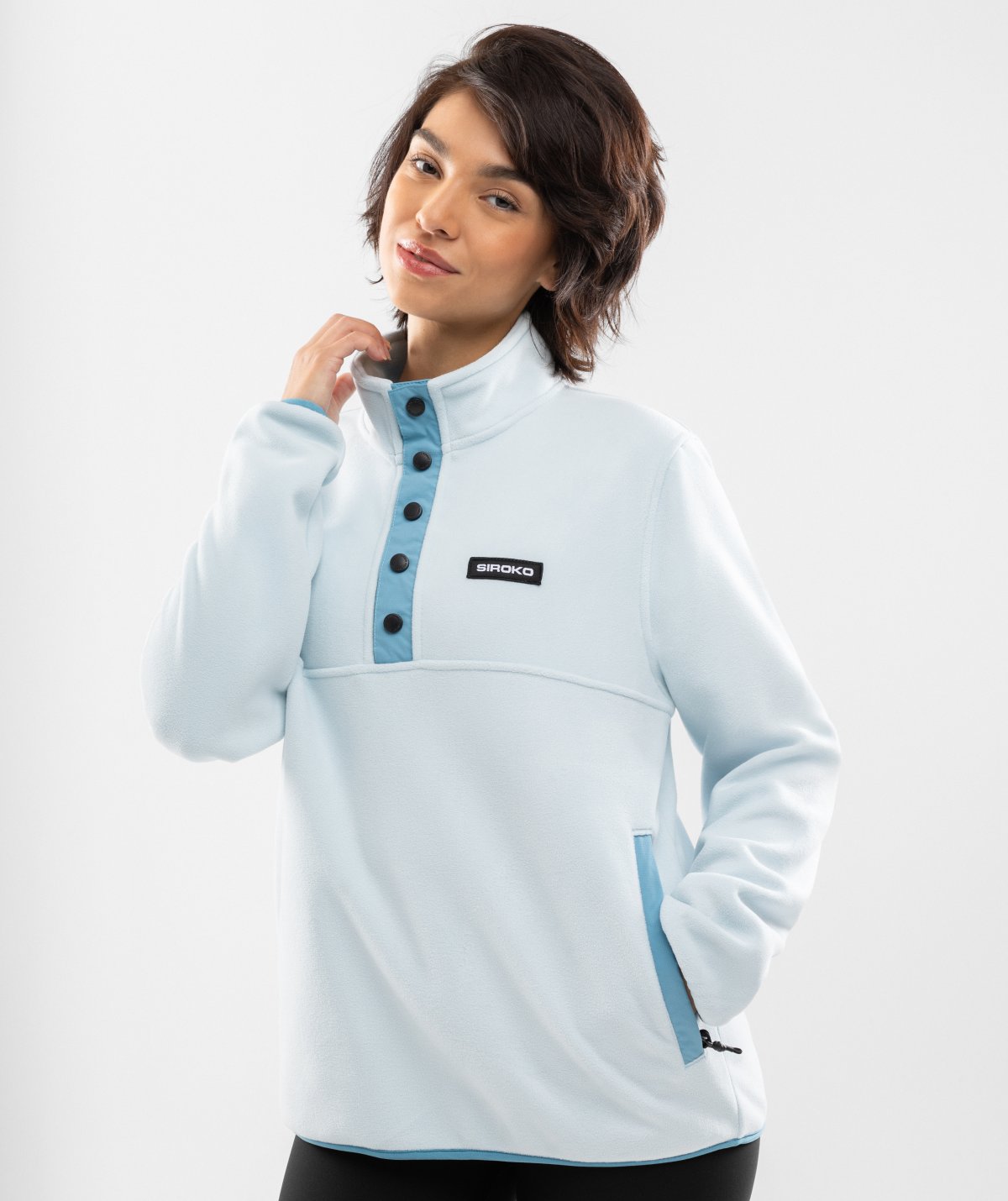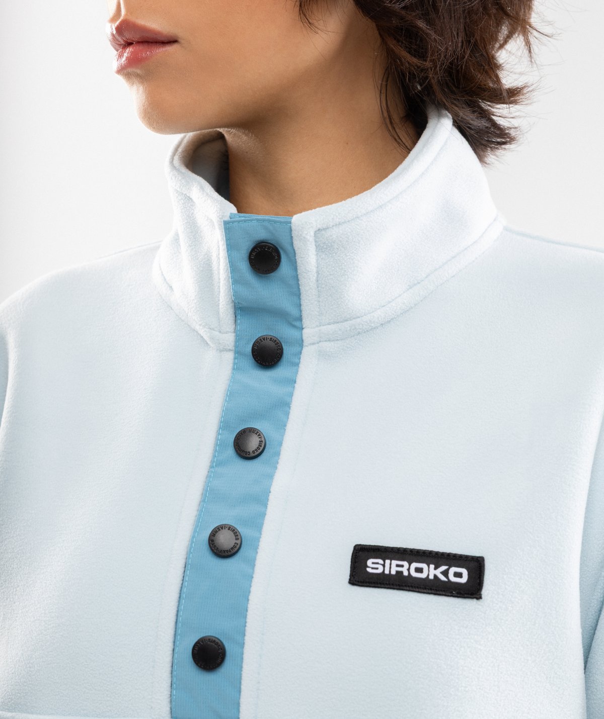 - Høj krave og halv snap-lukning foran