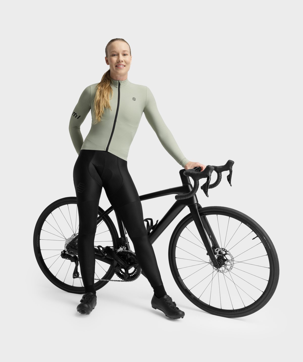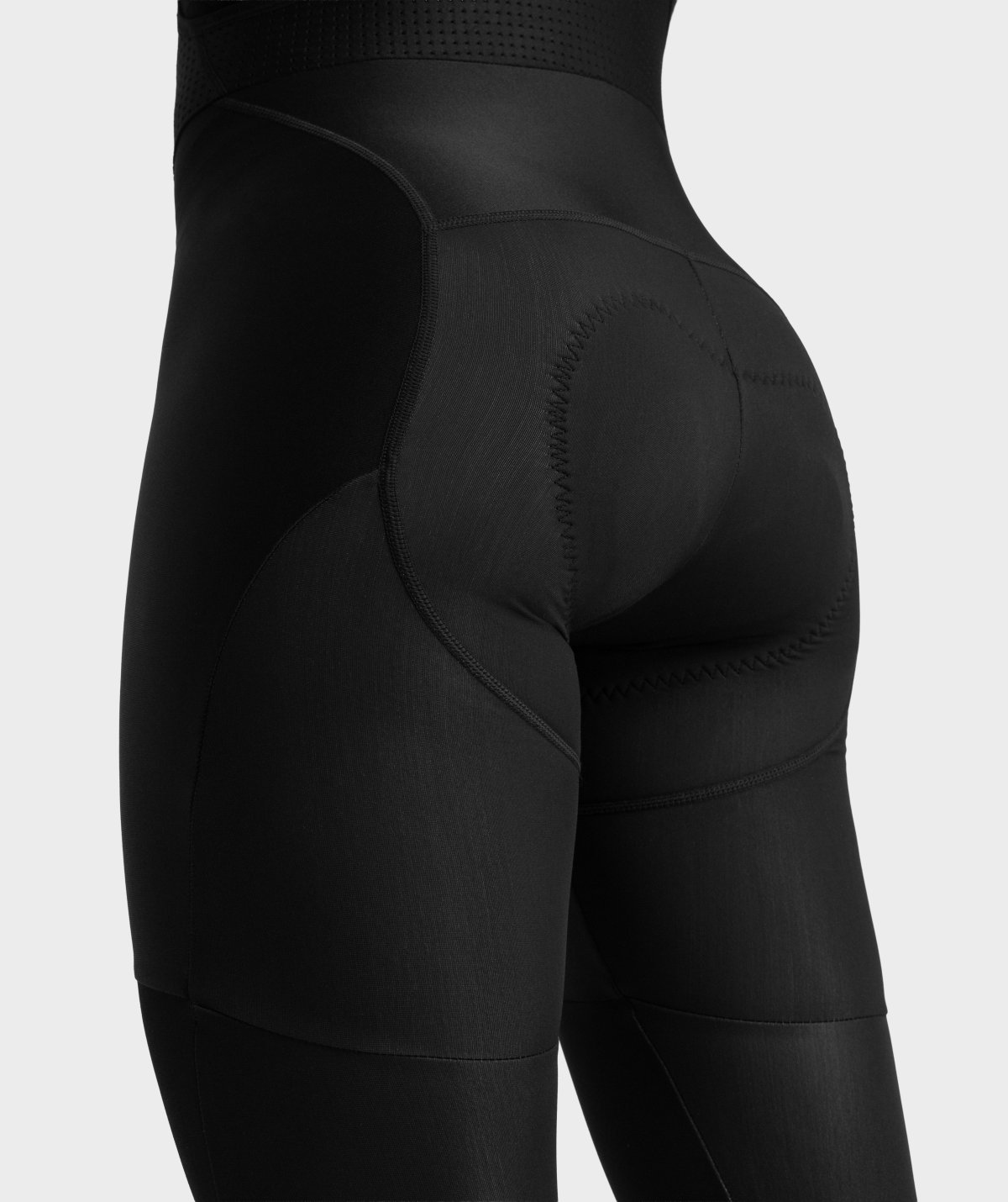 Denne stil inkorporerer Strato++ pad med Elastic Interface® teknologi, lavet med E.I.T Eco X-Fifty bakteriostatisk stof og dobbelt densitet. Det omhyggelige valg af avancerede materialer giver mulighed for en perfekt tilpasning til top kvindelige cyklisters anatomi. Italiensk M.I.T.I. Thermoroubaix®-stoffet har en børstet hudside for en enestående følelse af blødhed og komfort samt ekstraordinær varmeisolering til at slå selv de koldeste klimaer. Vindtætte paneler lavet af italiensk M.I.T.I. Arrowind™ stof på skinnebenene, lårene og lændeområdet gør cykelbuksene til et ægte skjold mod vind og fugt. DWR-belægning giver dig mulighed for at nyde din yndlingssport selv på regnvejrsdage. Dens sammensætning af polyester, nylon og elastan af høj kvalitet opnår optimal kompression og pasform med enestående aerodynamisk ydeevne.