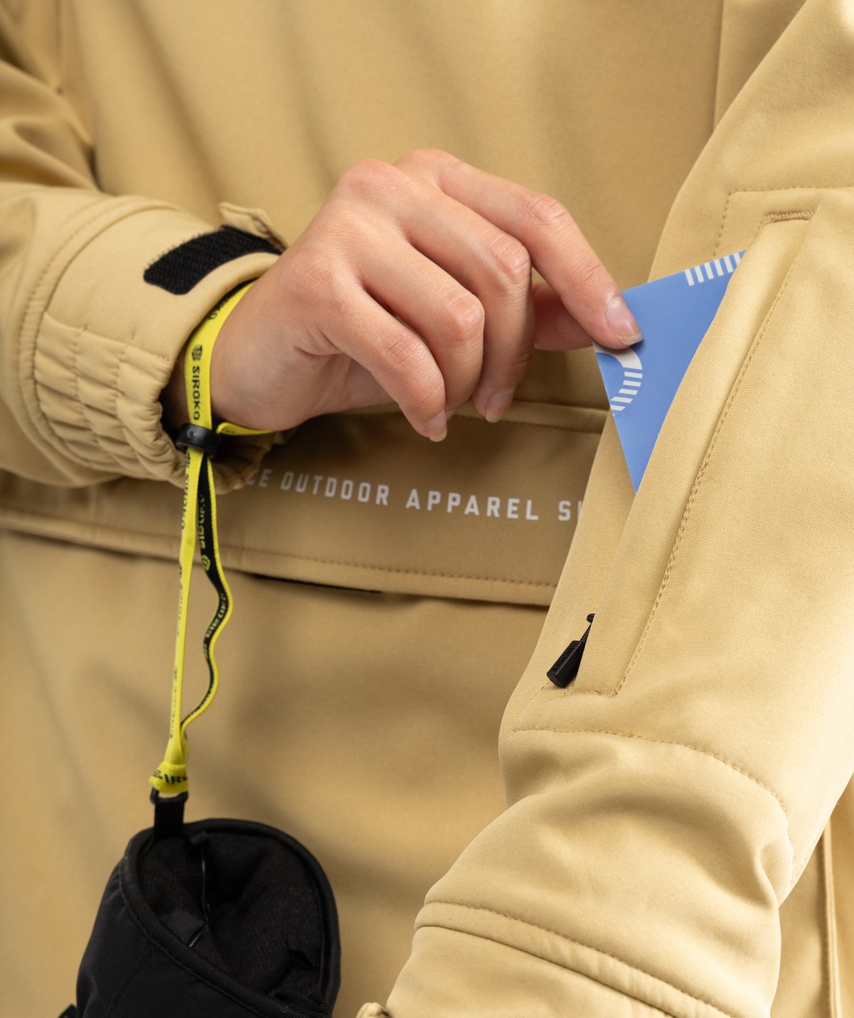 - Liftkortlomme med lynlås på underarmen