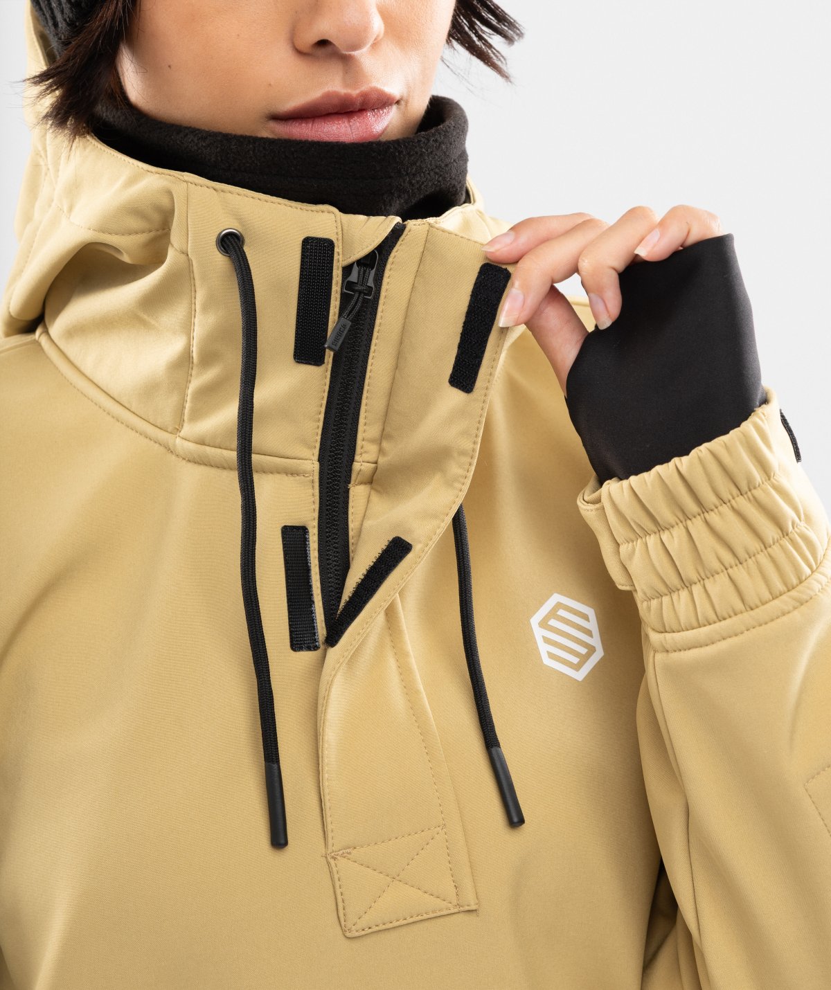 - Høj krave og halv lynlås med stormklap for ekstra beskyttelse mod vind og kulde