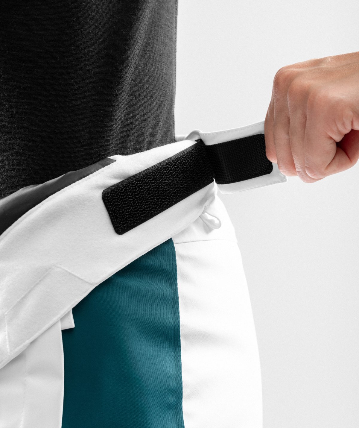 - Verstellbarer Bund mit Seitenklettverschlüssen