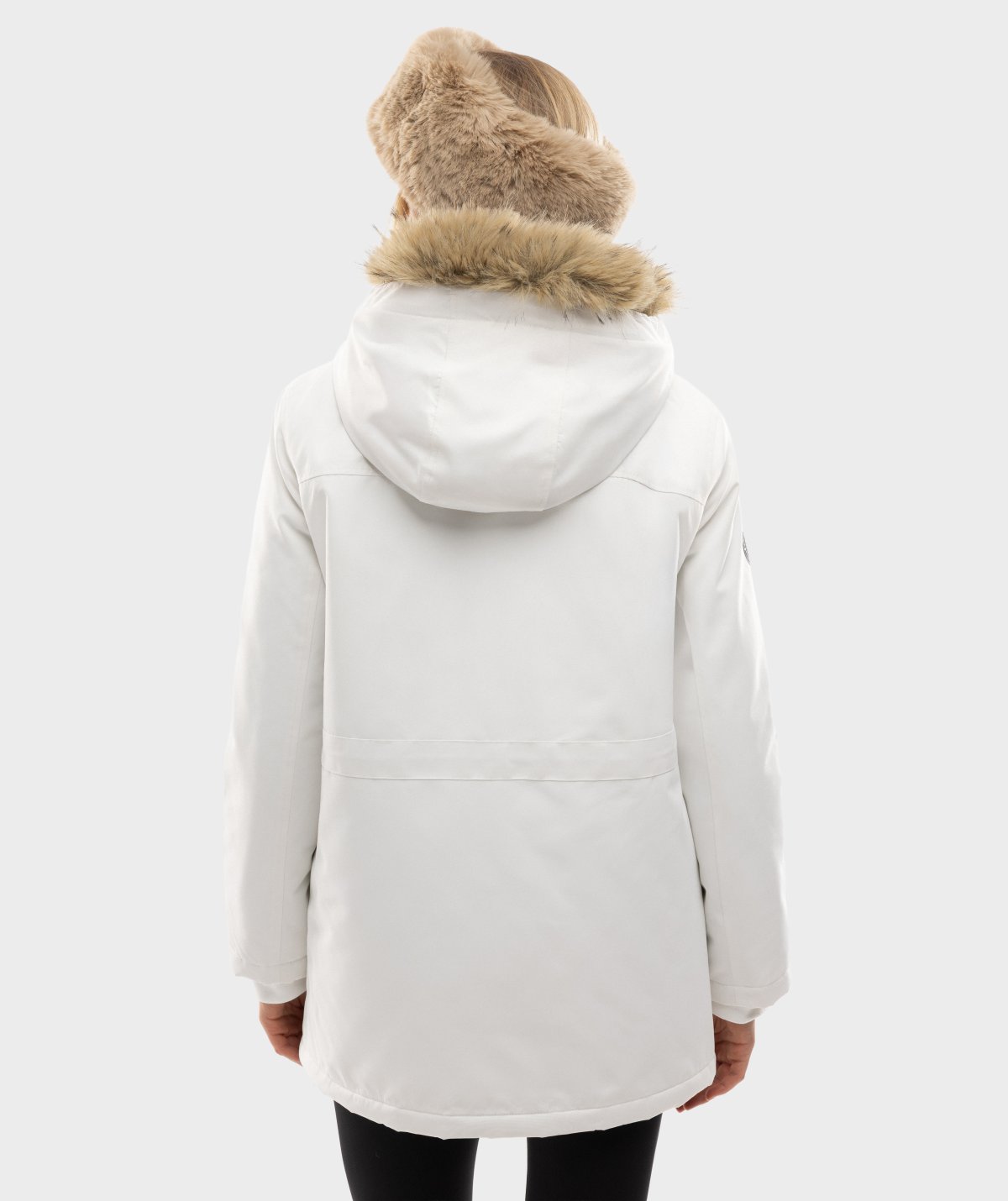 - Ρυθμιζόμενη κουκούλα με κορδόνι και αποσπώμενη συνθετική γούνα