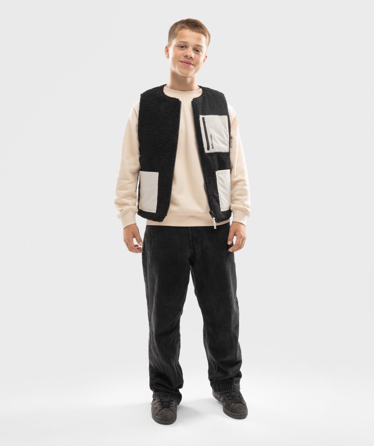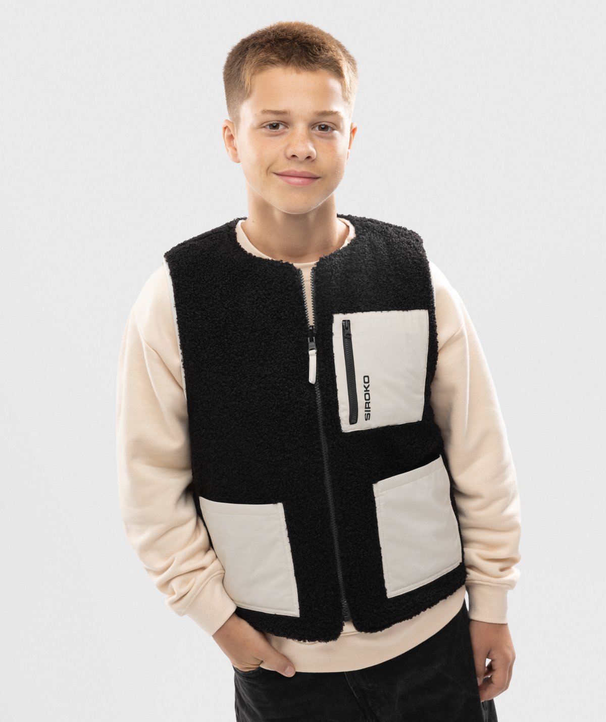 - Δύο μπροστινές τσέπες και μία τσέπη στο στήθος με φερμουάρ στην πλευρά Β
