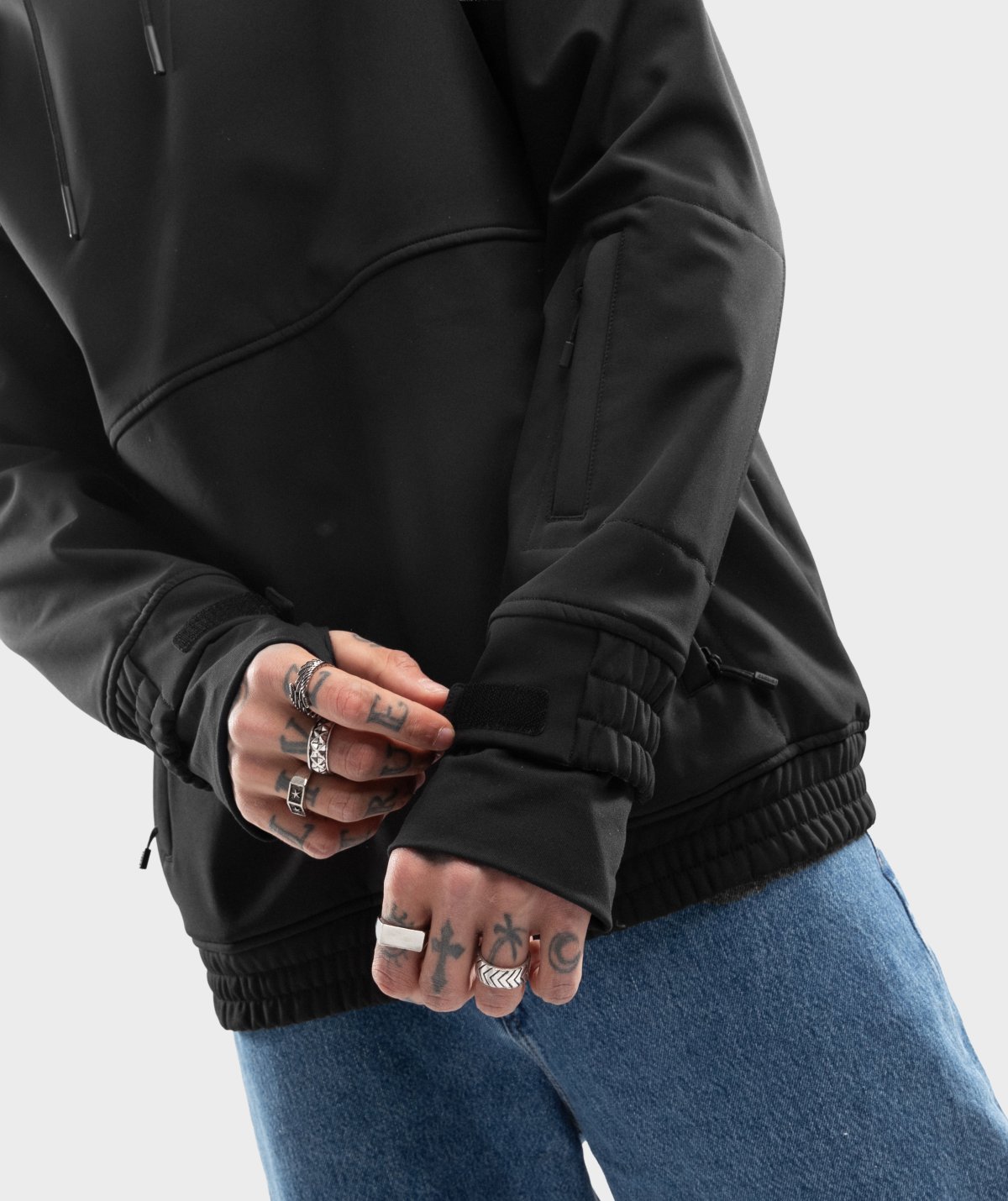 Το ύφασμα softshell αποτελείται από τρεις στρώσεις διαφορετικών υλικών για να εγγυάται βέλτιστη απόδοση. Η εξωτερική στρώση, που είναι φτιαγμένη από πολυαμίδιο και ελαστάν, προσφέρει προστασία από το χιόνι και τη βροχή (έως και 10.000 mm στήλη ύδατος). Η μεσαία στρώση είναι φτιαγμένη από μια μεμβράνη TPU που σας προστατεύει από τον άνεμο, απομακρύνοντας την υγρασία από το σώμα. Η εσωτερική του στρώση προσφέρει άριστη θερμική μόνωση χάρη στο ύφασμα μικροϊνών φλις πολυεστέρας για να διατηρεί το σώμα σας ζεστό και άνετο.