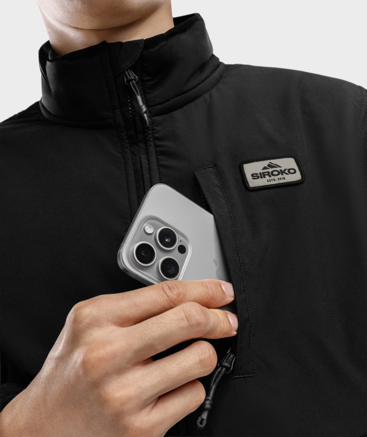 - Un bolsillo en el pecho y dos bolsillos laterales con cremalleras SBS