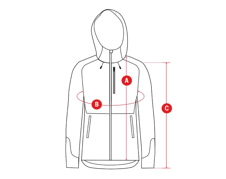 - Kolme vedenpitävää vetoketjullista taskua: kaksi sivuilla ja yksi rinnassa