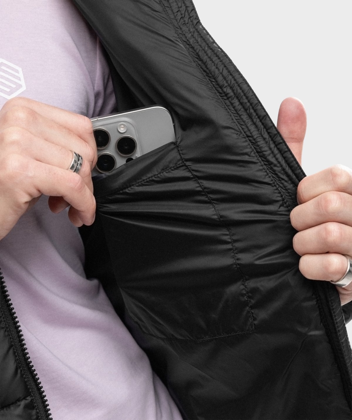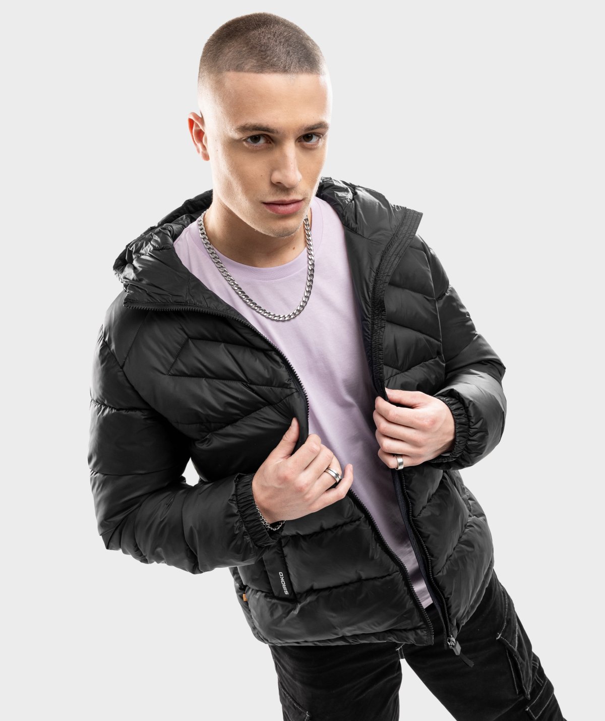 - Fermeture éclair frontale avec tirette en tissu, protège-menton et rabat intérieur pour prévenir les frottements