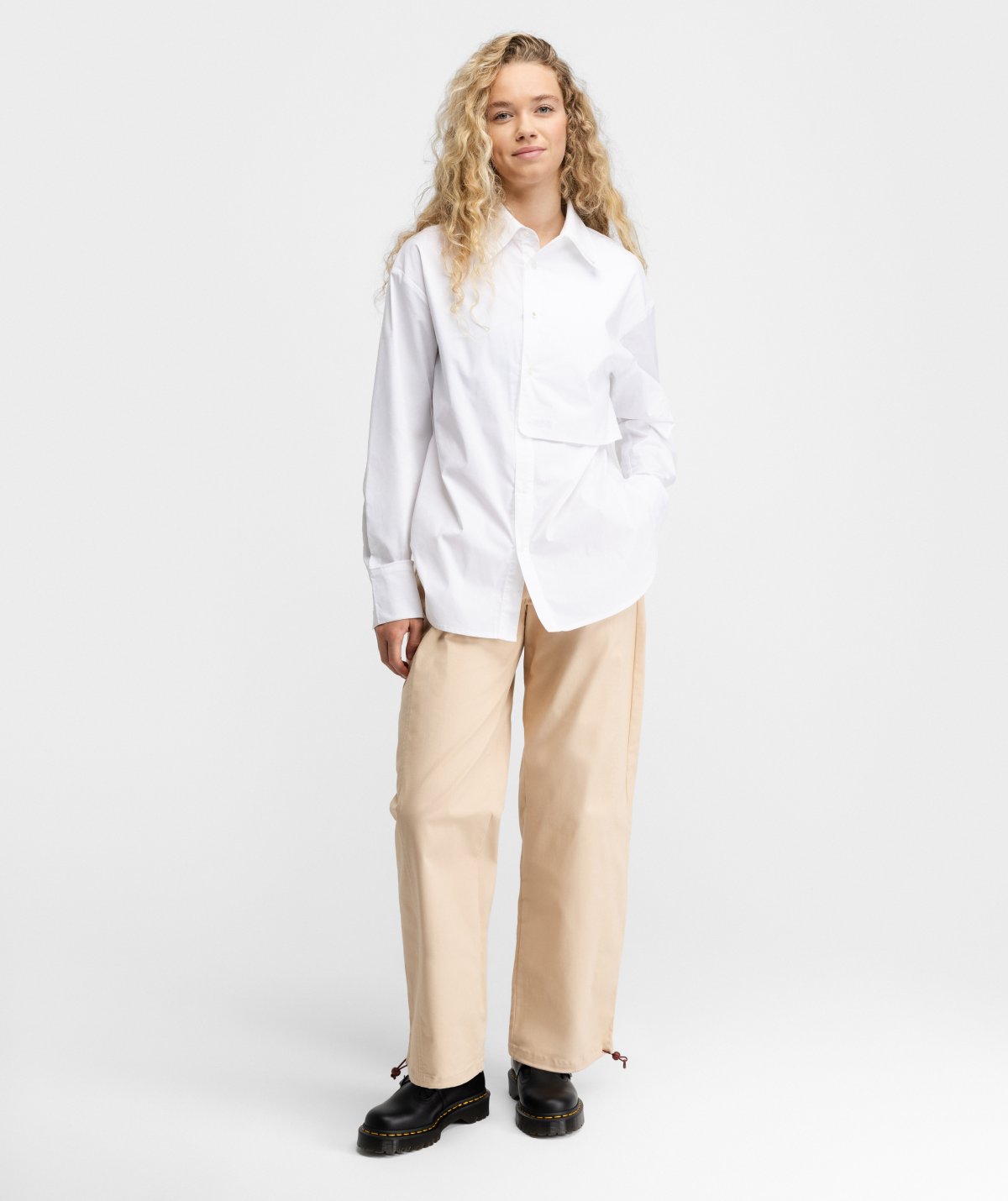 - Taille haute avec passants de ceinture et coupe droite avec chevilles à cordon réglable
