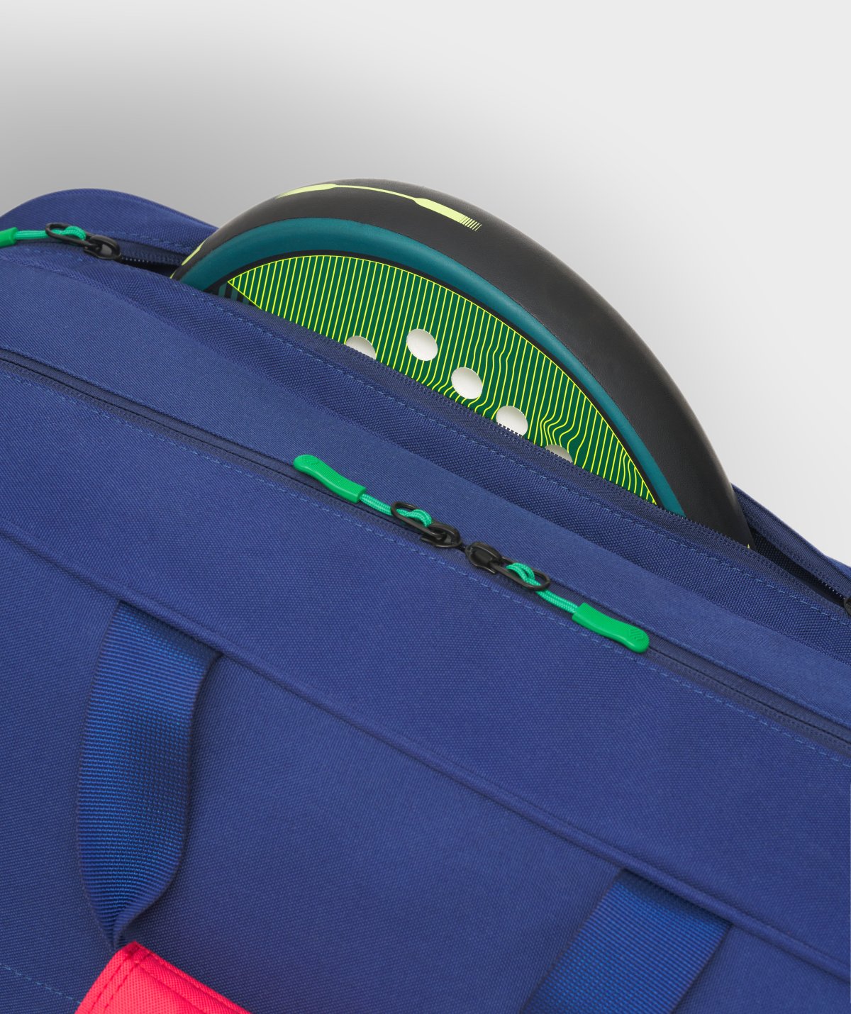 - Due sezioni principali progettate per trasportare 2 racchette da padel, abbigliamento, asciugamani o attrezzatura extra