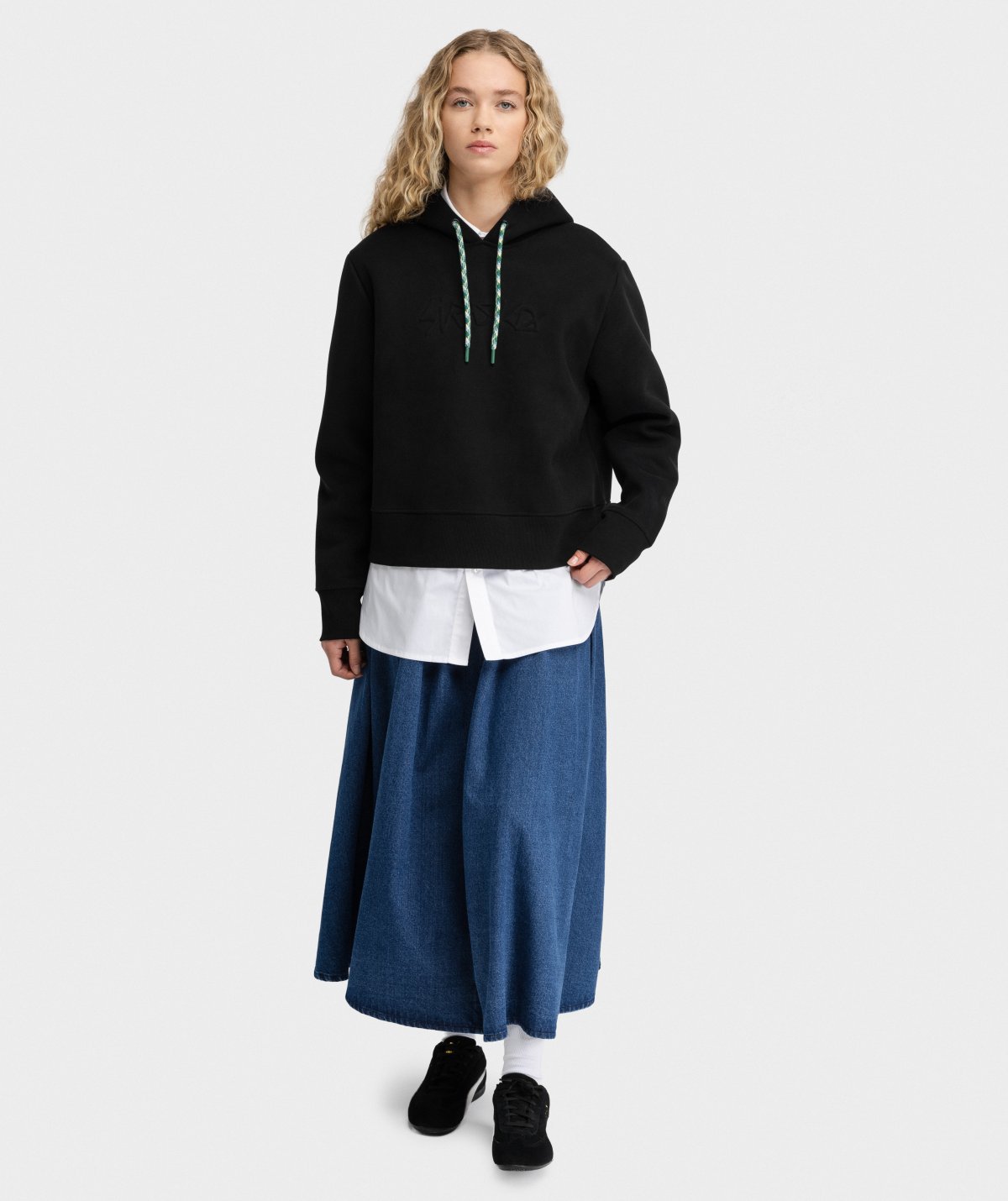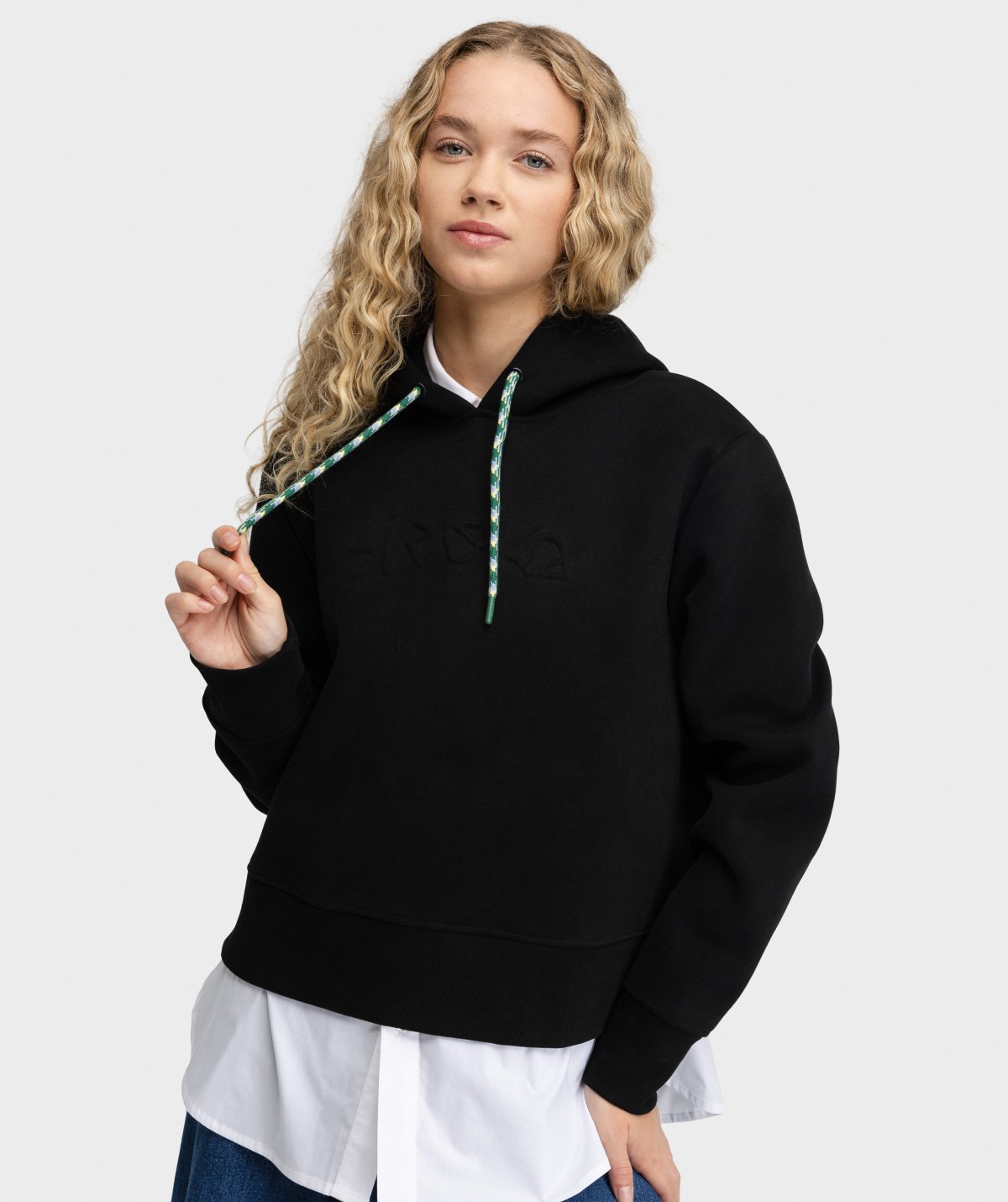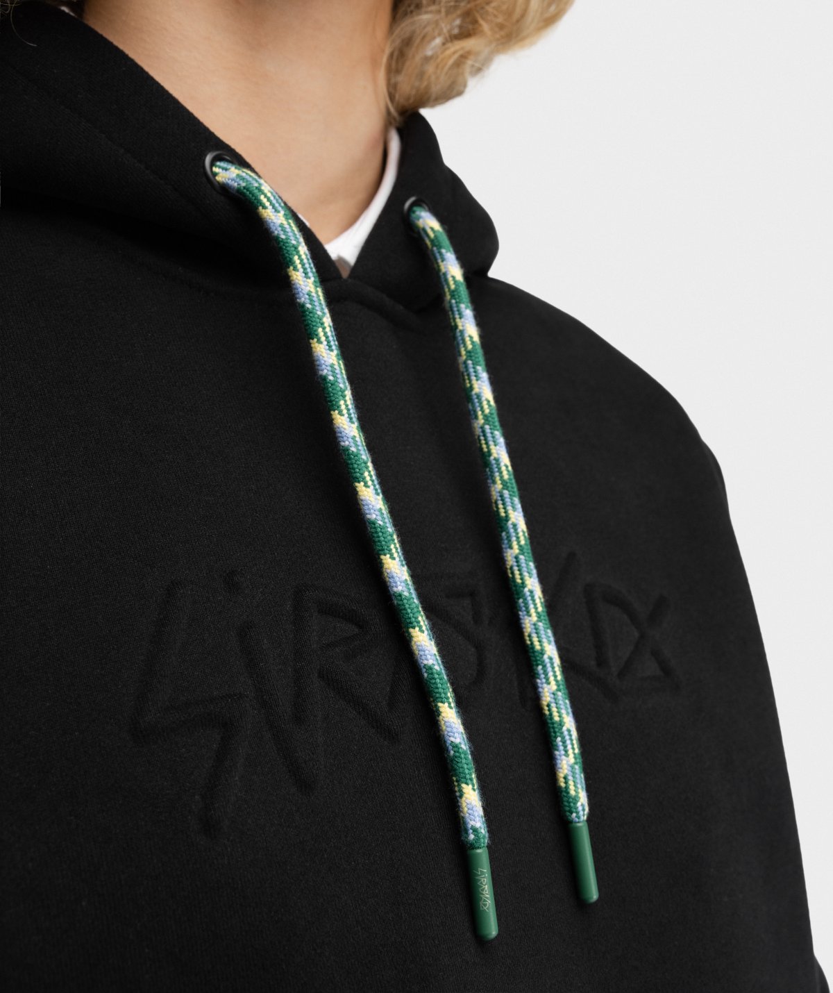 - Cappuccio ampio e regolabile con cordini