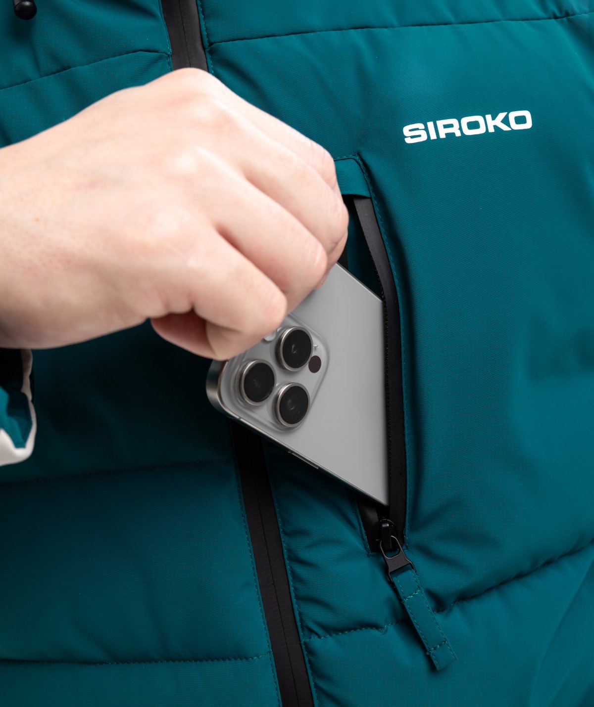 - Tasca con cerniera zip sull'avambraccio per lo ski pass