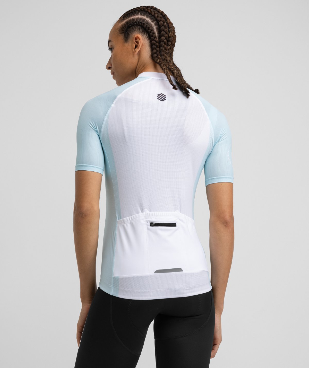 Ideata specificamente per condizioni di bel tempo e per l'allenamento indoor. Il taglio aderente Race Slim Fit e un design unico che si adatta perfettamente alle forme del corpo femminile assicurano il massimo comfort. Cerniera lampo SBS Full Hidden semi-automatica con protezione Zip Guard anti-attriti, linguetta riflettente di sicurezza e tre tasche sulla schiena a completare il resto del design.