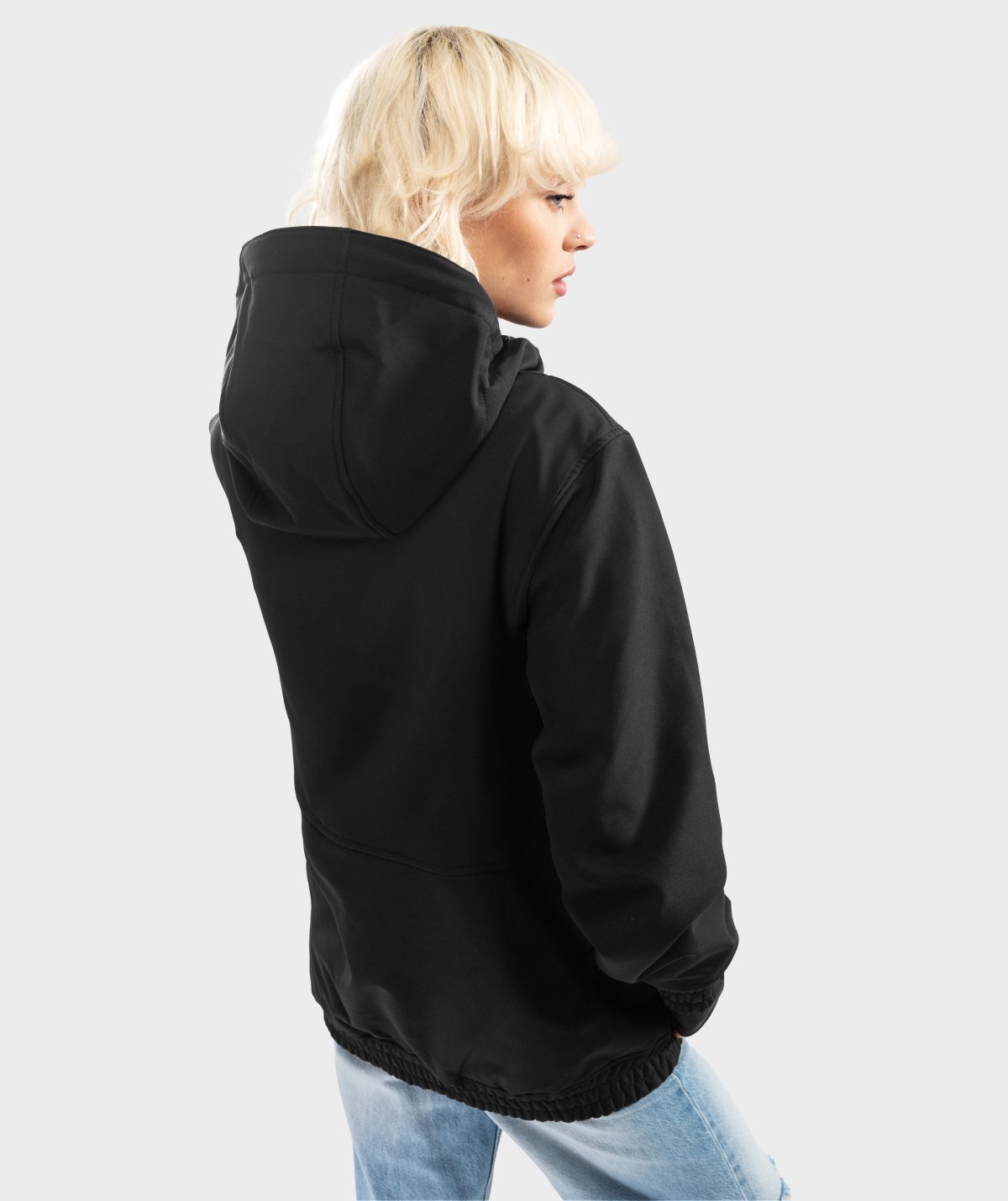 El tejido softshell está compuesto de tres capas de diferentes materiales que garantizan un rendimiento óptimo. La capa exterior, fabricada en poliéster y elastano, te protegerá de la nieve y la lluvia (columna de agua 10 000 mm). La capa intermedia está compuesta por una membrana de TPU que proporciona protección cortavientos, permitiendo al mismo tiempo evacuar la humedad corporal. La capa interior garantiza un excelente aislamiento térmico gracias a su tejido micropolar de poliéster que contribuye a retener el calor corporal.