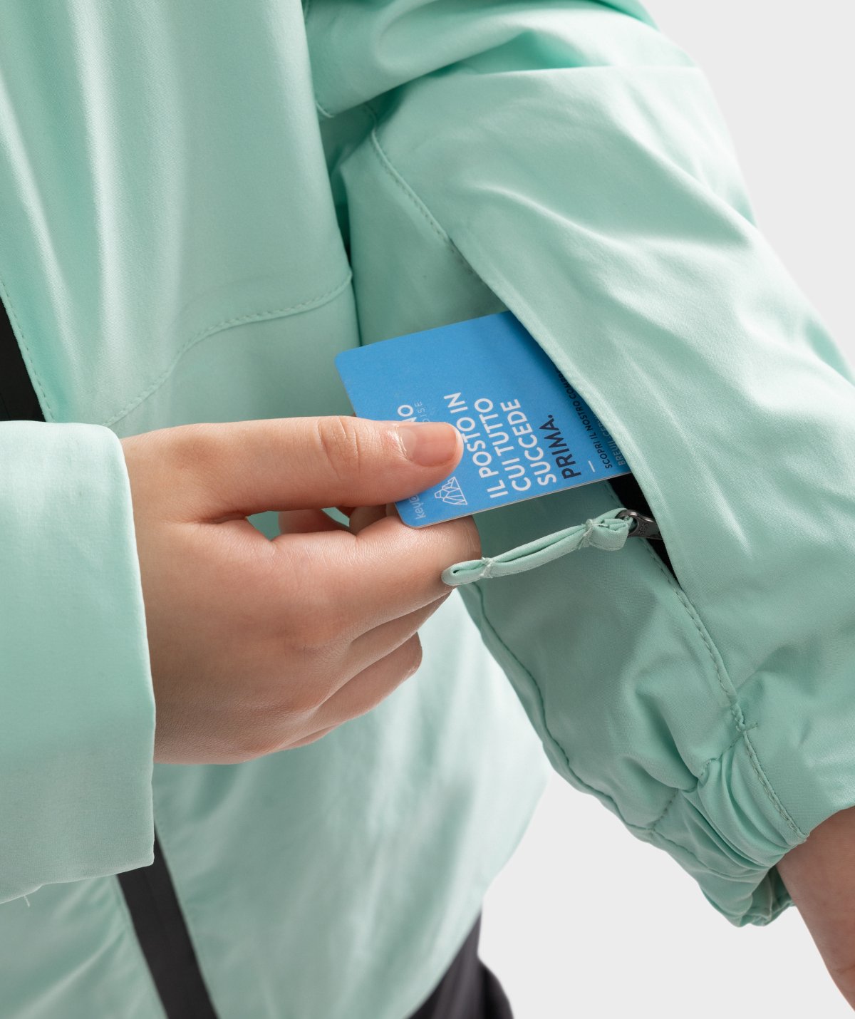 - Bolsillo con cremallera en el antebrazo para el forfait