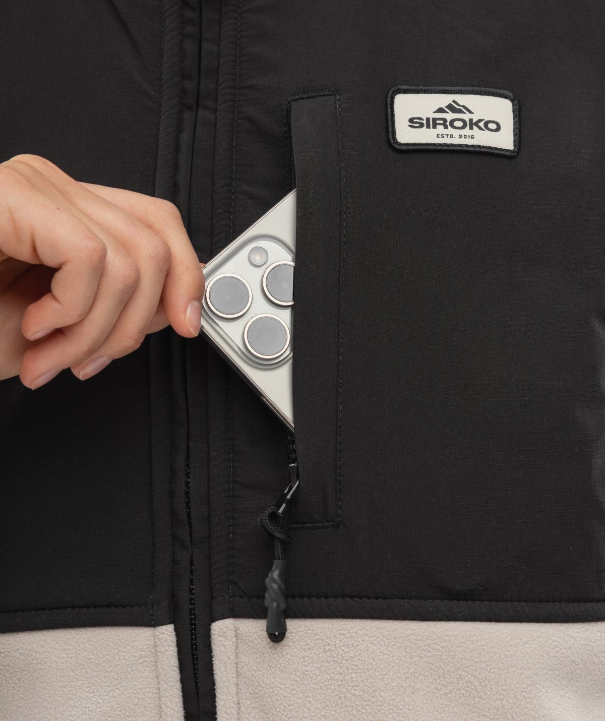 - En brystlomme og to sidelommer med SBS-glidelås