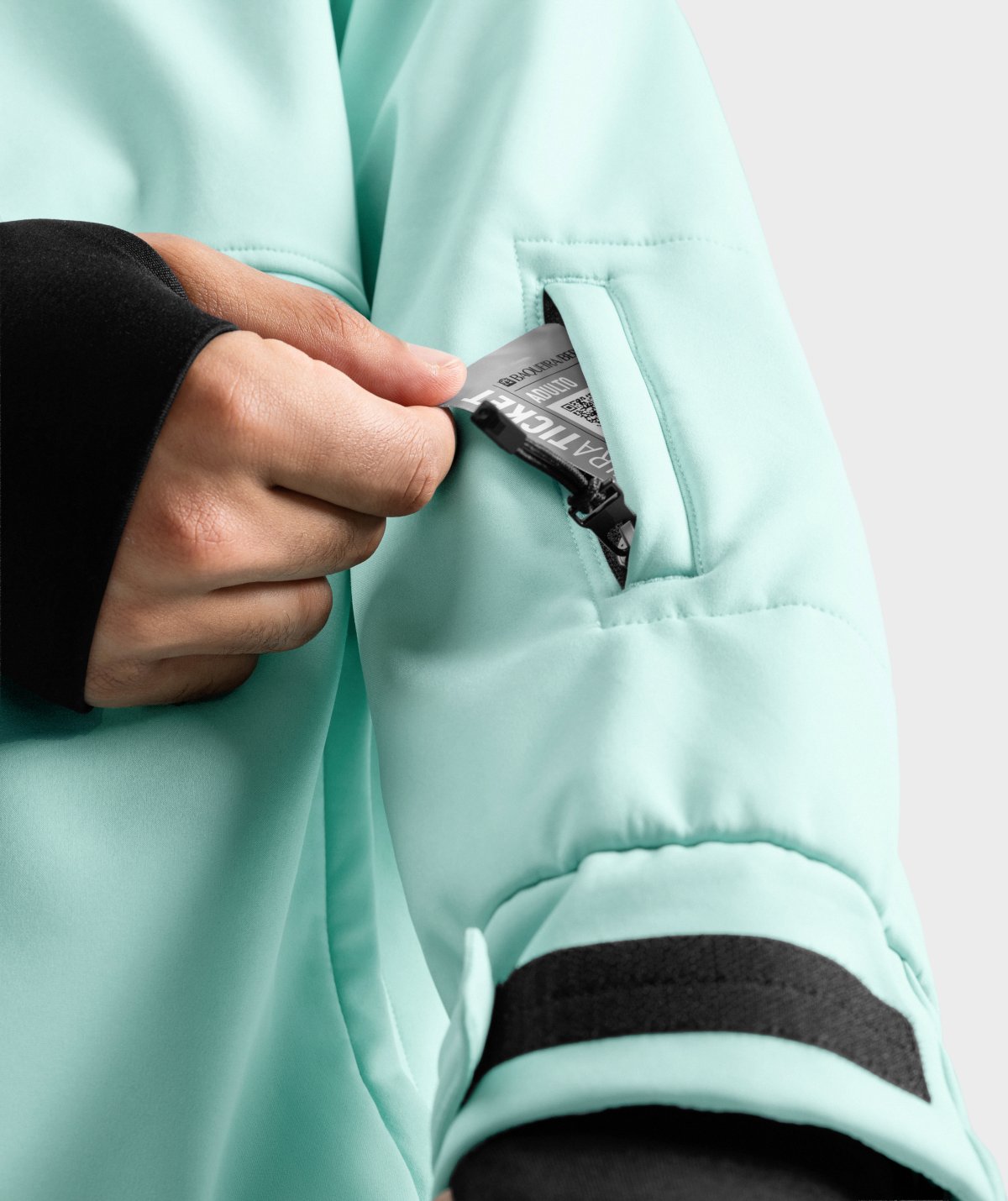 - Heiskortlomme med glidelås på underarmen