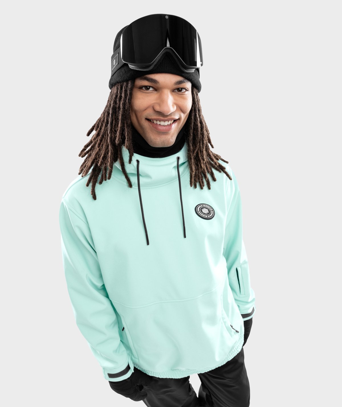 Softshellstoffet er sammensatt av tre lag med forskjellige materialer for å sikre optimal funksjonalitet. Det ytre laget består av polyester og elastan, og gir beskyttelse mot snø og regn (opptil 10.000 mm vannsøyle). Mellomlaget er laget av en TPU-membran som beskytter deg mot vind og fjerner fuktighet fra kroppen din. Det indre laget gir utmerket varmeisolering takket være mikrofleecestoffet i polyester som bidrar til å beholde kroppsvarm.