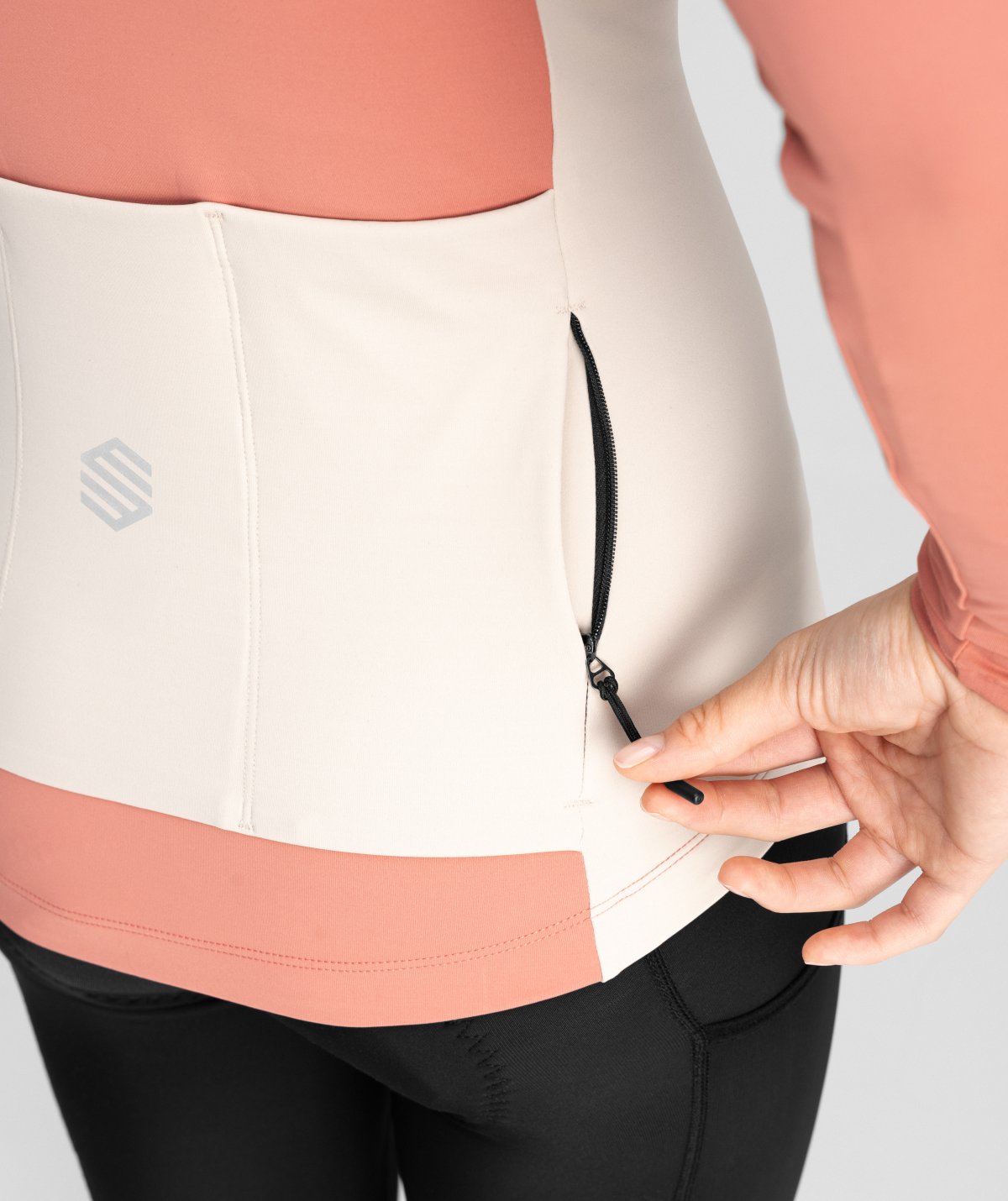 - Semi-automatic half-zip with an underlay to prevent chafing