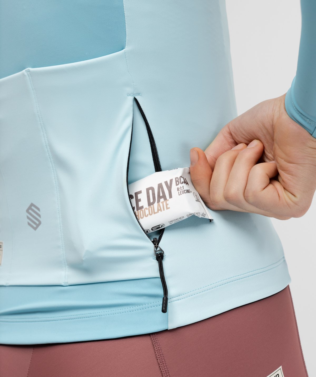 - Semi-automatic half-zip with an underlay to prevent chafing