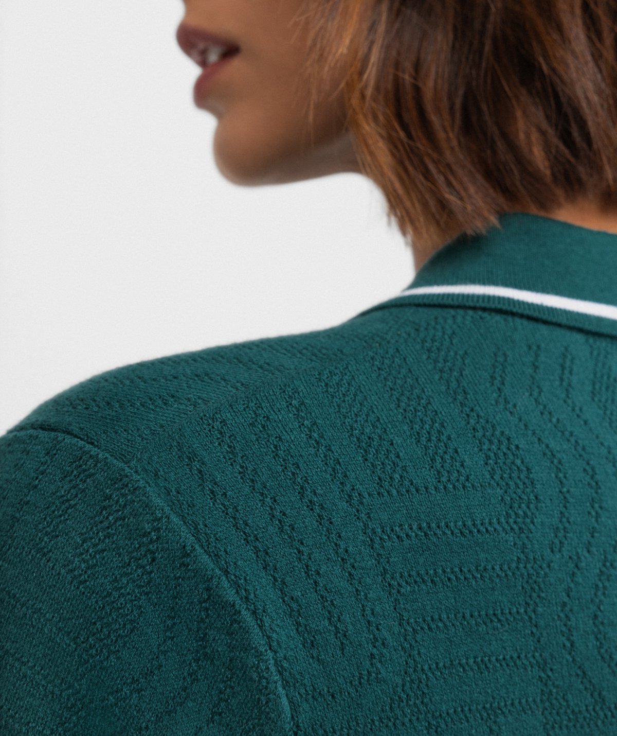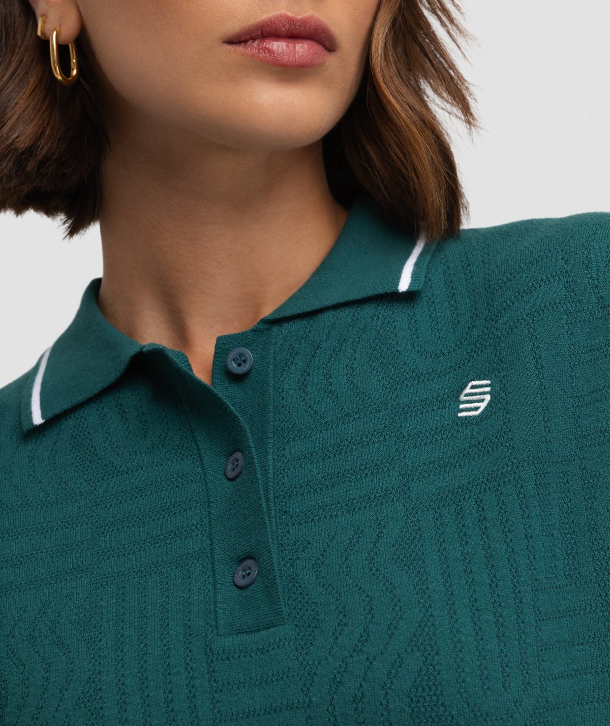 - Classic polo collar with a three-button placket for personalized fit