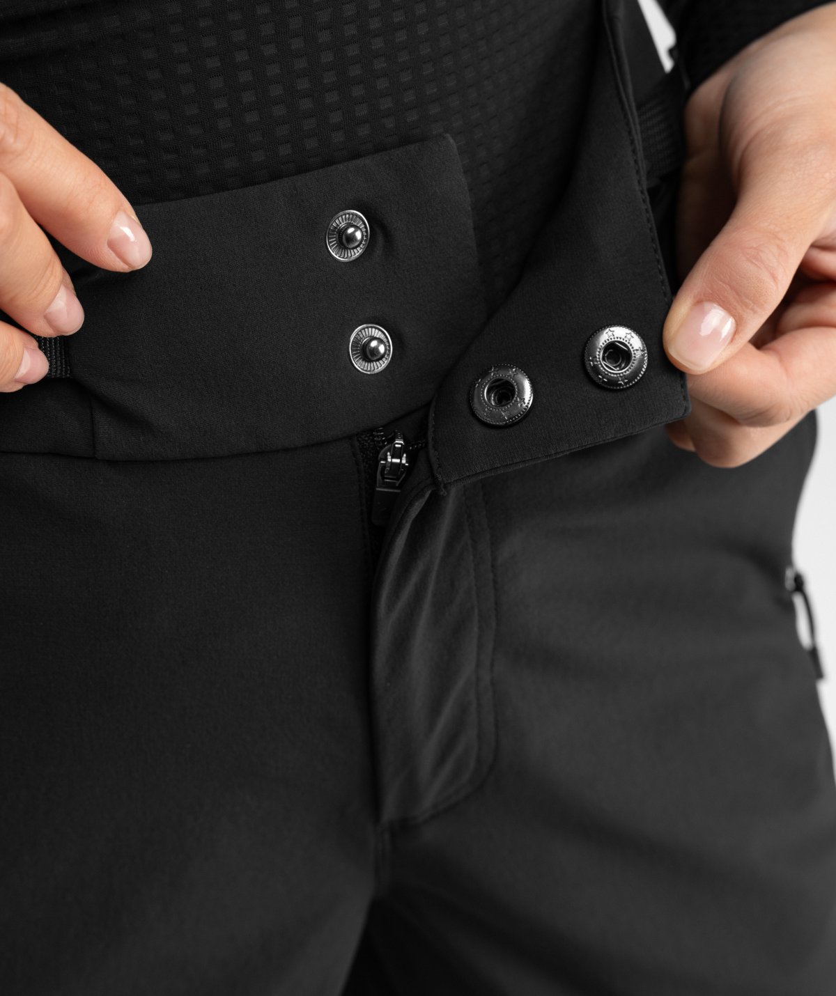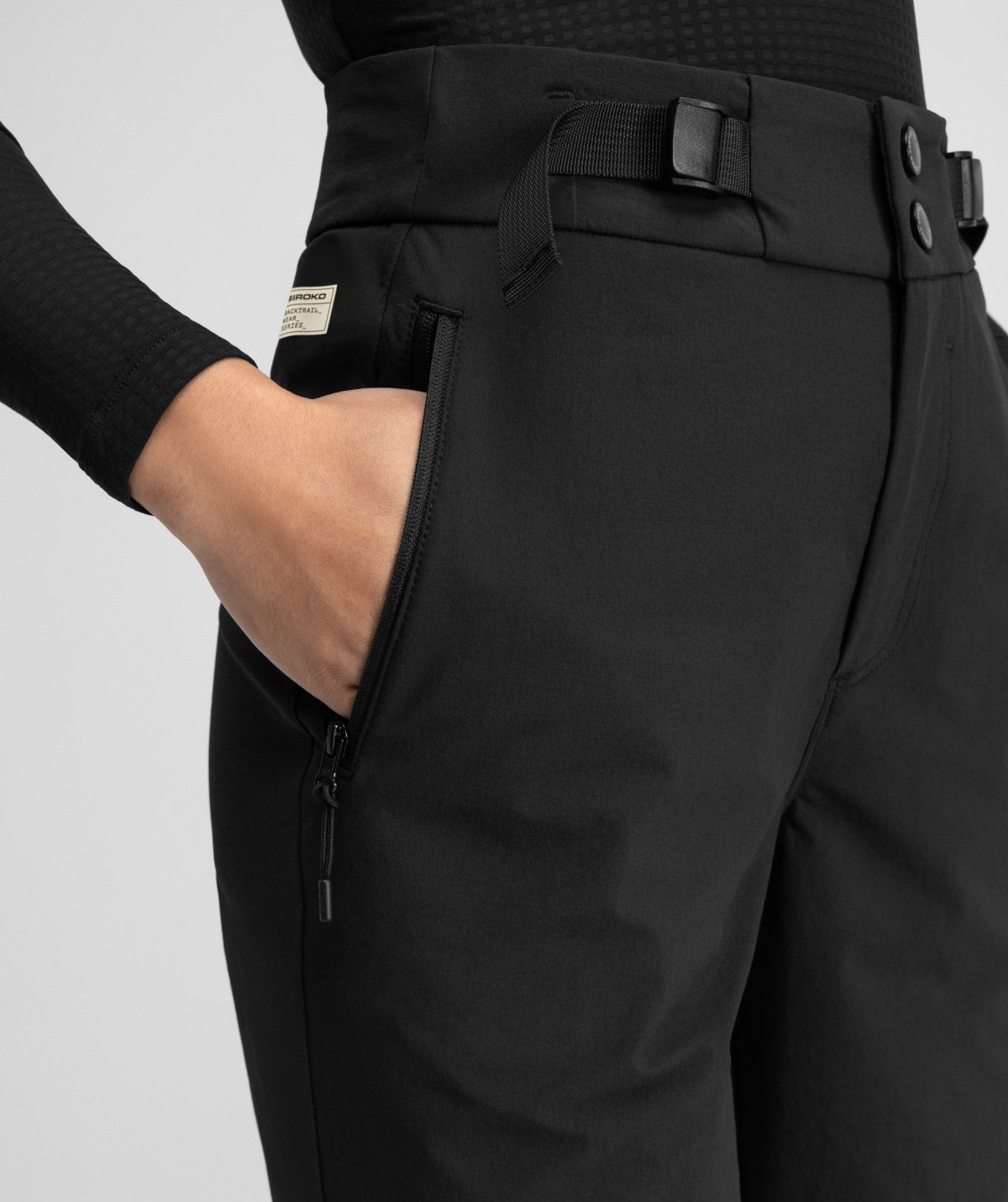 - Waist with belt loops and adjustable buckles