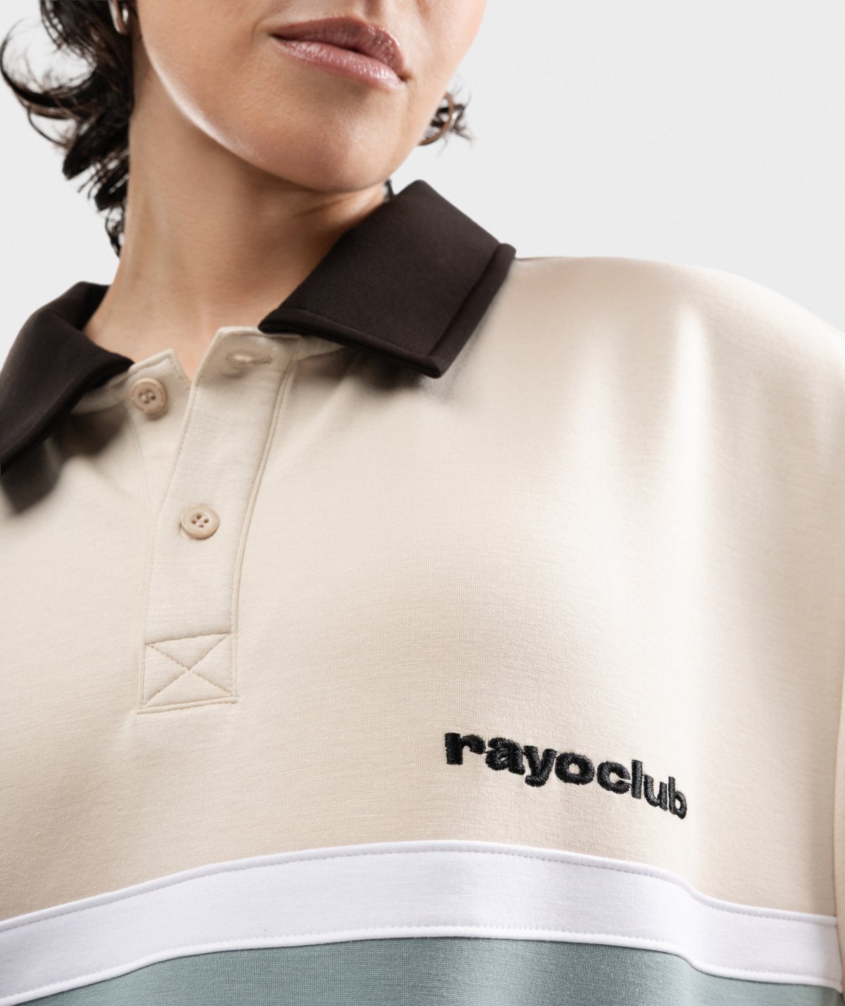 - Classic polo collar with a two-button placket for personalized fit