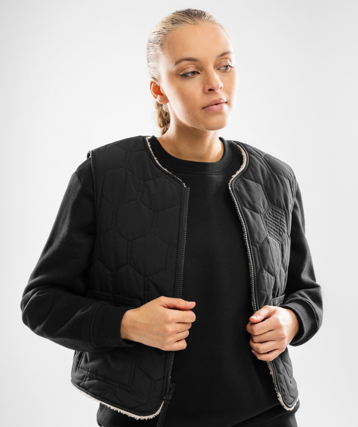 Women's reversible sherpa quilted vest