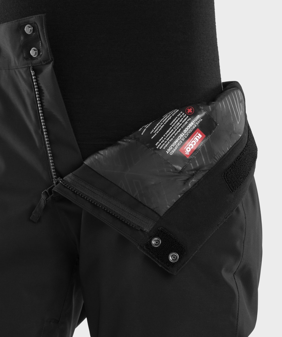 Thanks to their sealed seams, these pants offer the protection you need against wind, snow and rain. Waterproof snow gaiters and gusseted ankle zippers offer enhanced boot fit and extra snow protection. Mesh-lined zippered vents on the inner thigh help wick away body moisture. An integrated RECCO® reflector makes you searchable to organized rescue teams worldwide in the event of an avalanche or other emergencies.