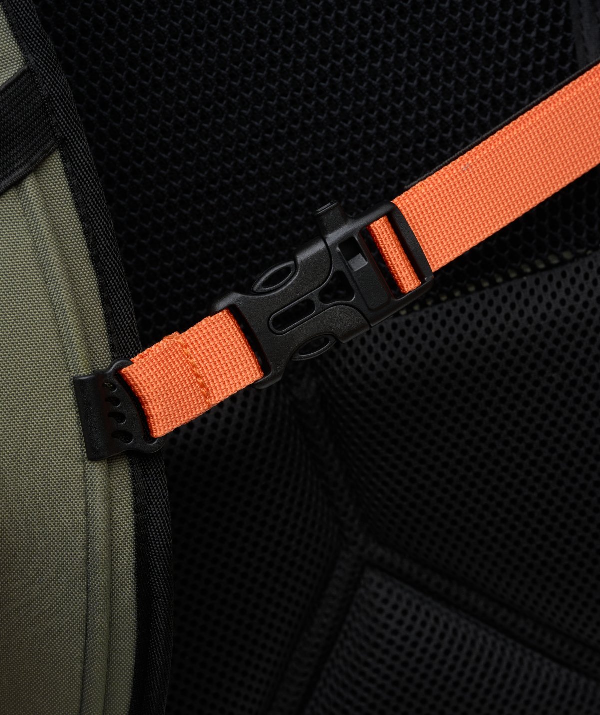 - Height-adjustable chest strap with quick-release buckle and built-in emergency whistle