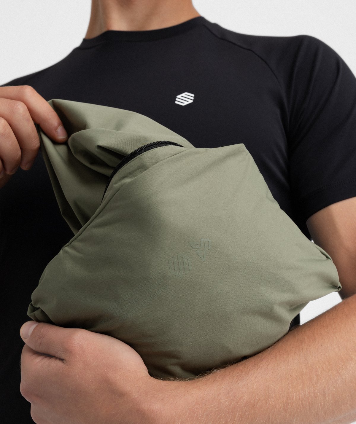 - Kompaktowa i łatwa w transporcie: można ją złożyć i przechowywać w dedykowanej kieszeni na piersi