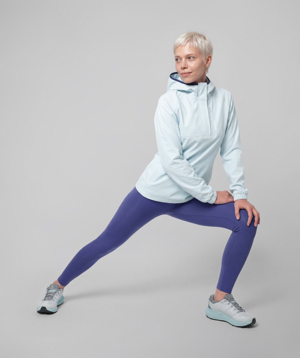 - Lekka, oddychająca, elastyczna tkanina zapewniająca swobodę ruchów