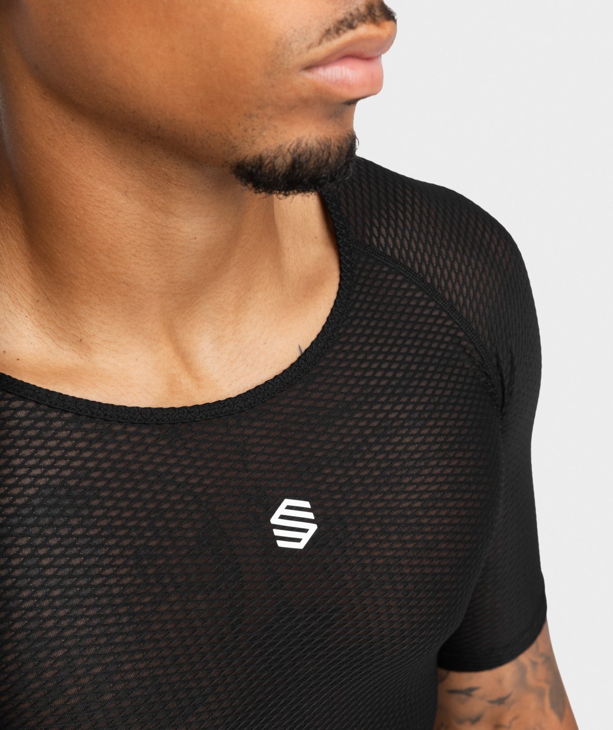 Feita com um tecido mesh de poliéster e elastano, proporciona uma transpiração perfeita e facilita a evacuação da humidade do corpo. O seu ajuste perfeito e a suavidade dos seus materiais garante o máximo conforto.