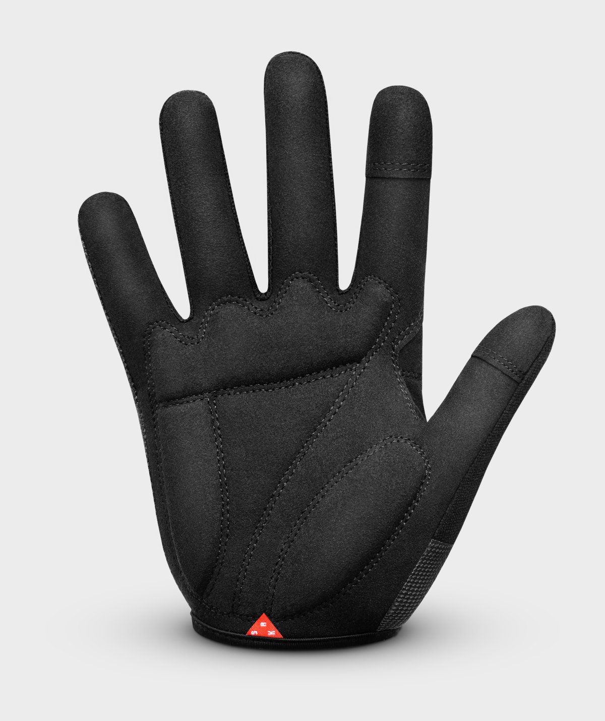 Ergonomiska gel-kuddar på handflatorna absorberar vibrationer och förbättrar dämpning. Meshtyg av polyester och elastan på handryggen för optimal andningsbarhet.