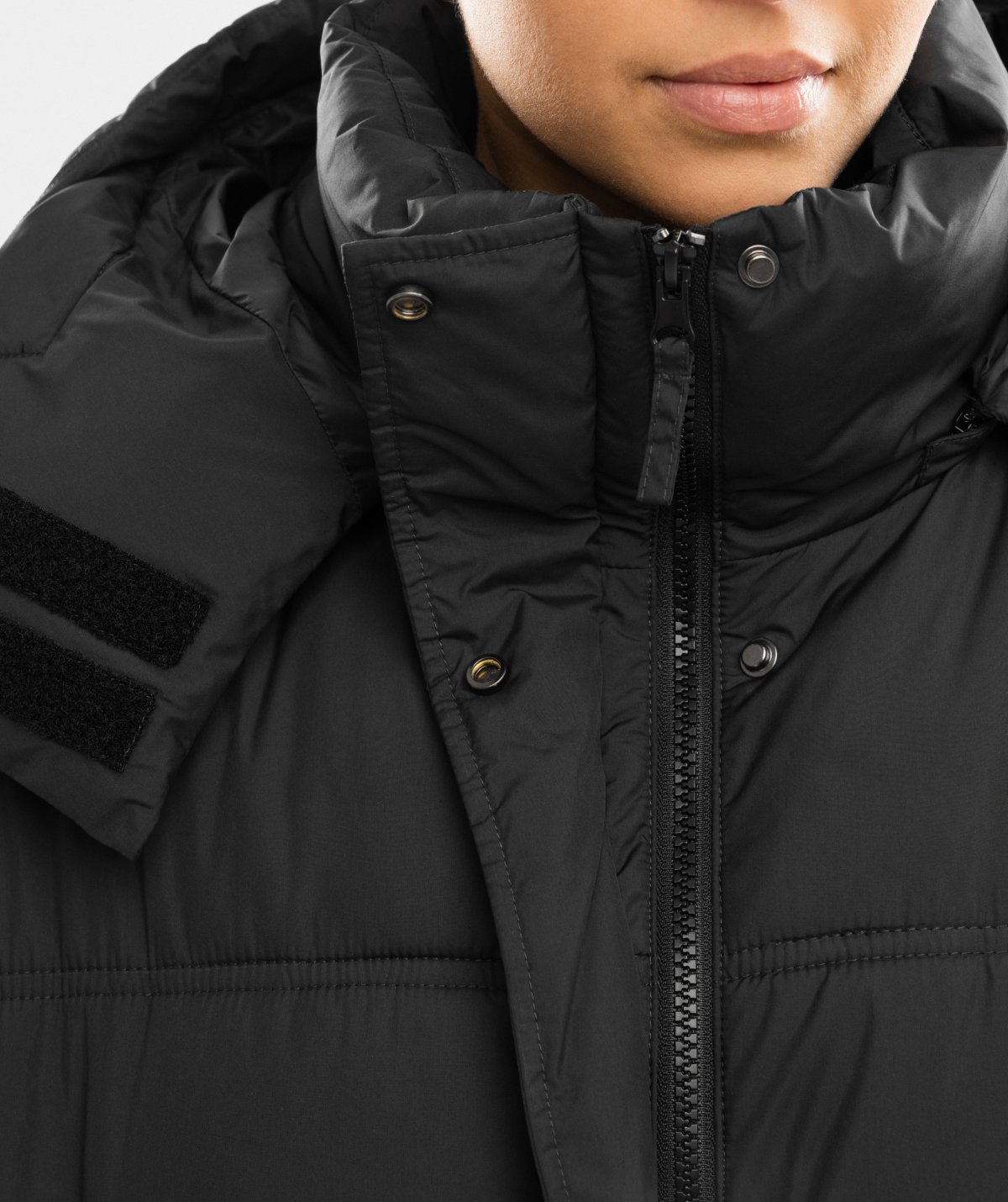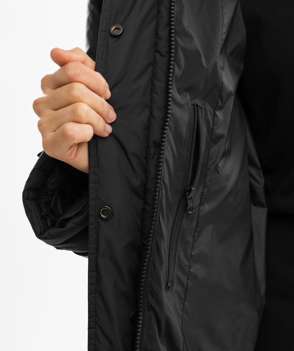 - Stängning med tvåvägsdragkedja framtill och stormflik med tryckknapp