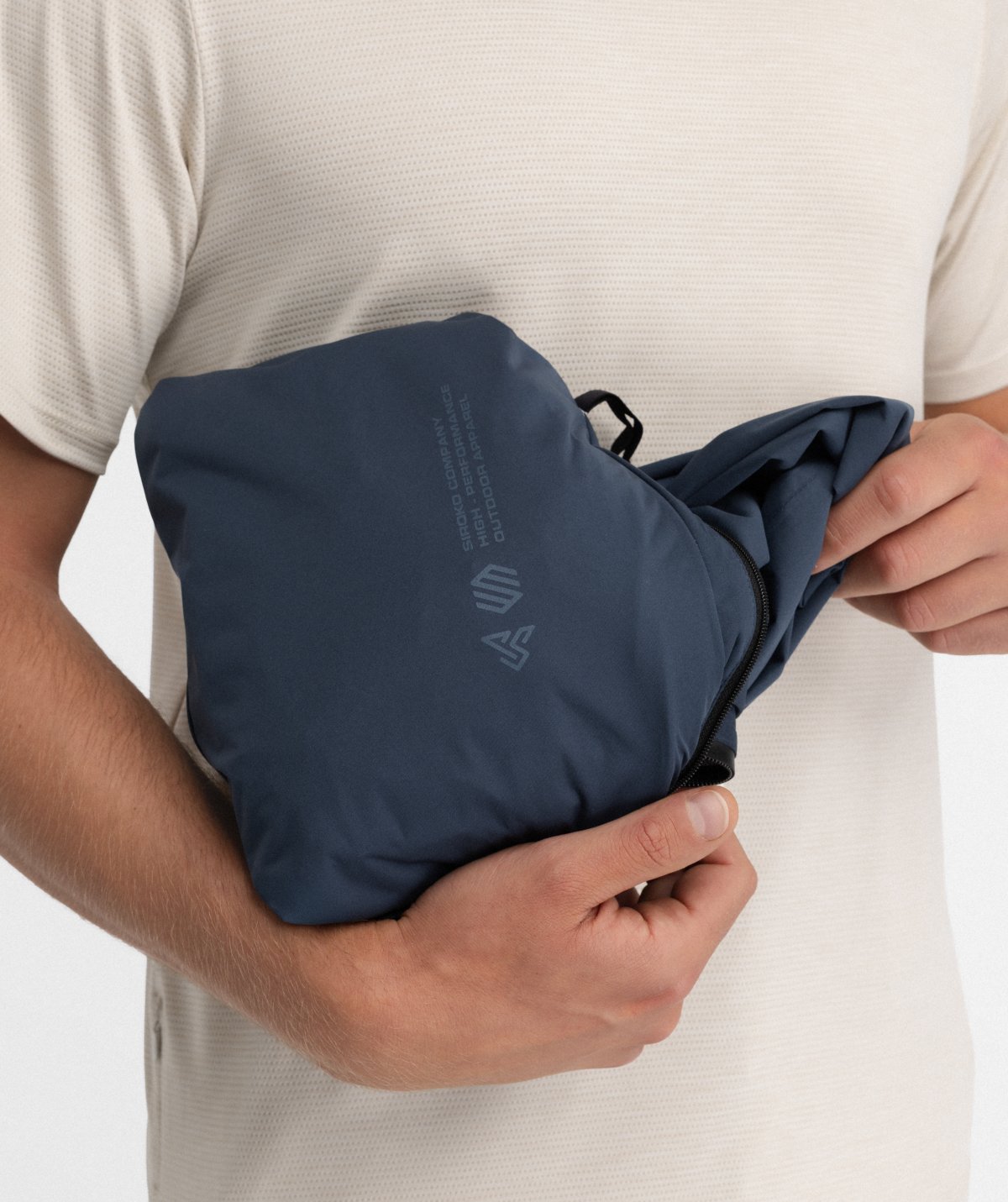 - Kompakt och portabel: den kan enkelt vikas ihop och förvaras i sin egen bröstficka