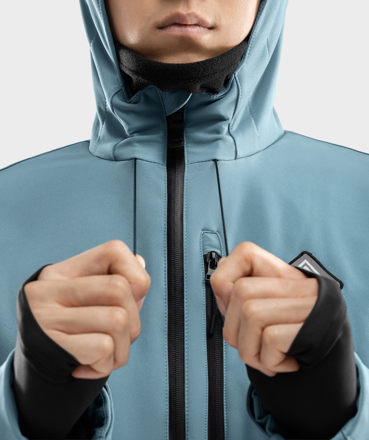 Softshell-tyget består av tre lager med olika material för att garantera optimal prestanda. Det yttre lagret, tillverkat av polyester och elastan, ger skydd mot snö och regn (upp till 10 000 mm vattenpelare). Mellanlagret är tillverkat av ett TPU-membran som skyddar dig från vinden och leder bort fukt från din kropp. Det inre lagret erbjuder utmärkt värmeisolering tack vare dess mikrofleecetyg i polyester som hjälper till att behålla kroppsvärmen.