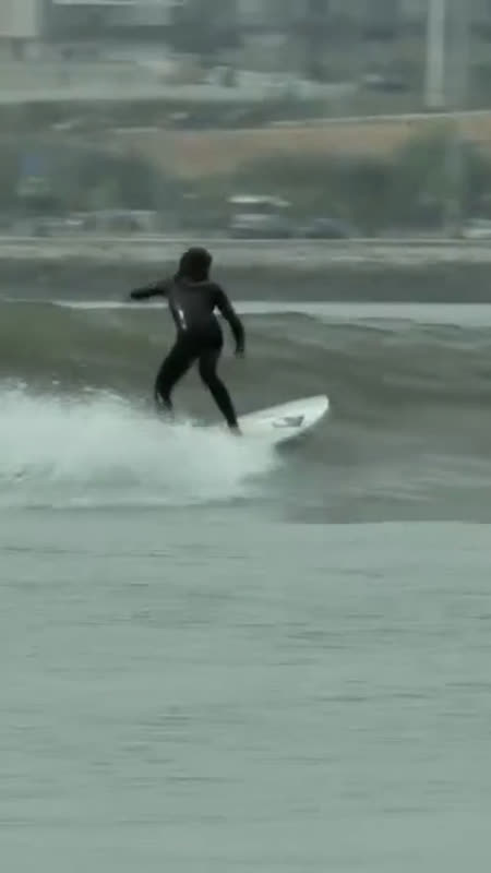 Surf sulle onde del fiume Tago in Portogallo e l’onda Gasoline · Gasoline