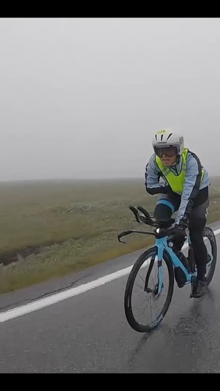 Carolina Laurentiu faces the cold during the cycling segment of the Norseman · Norseman