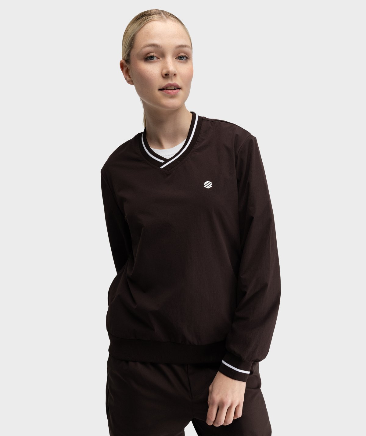 女士 V 领高尔夫防风套头衫